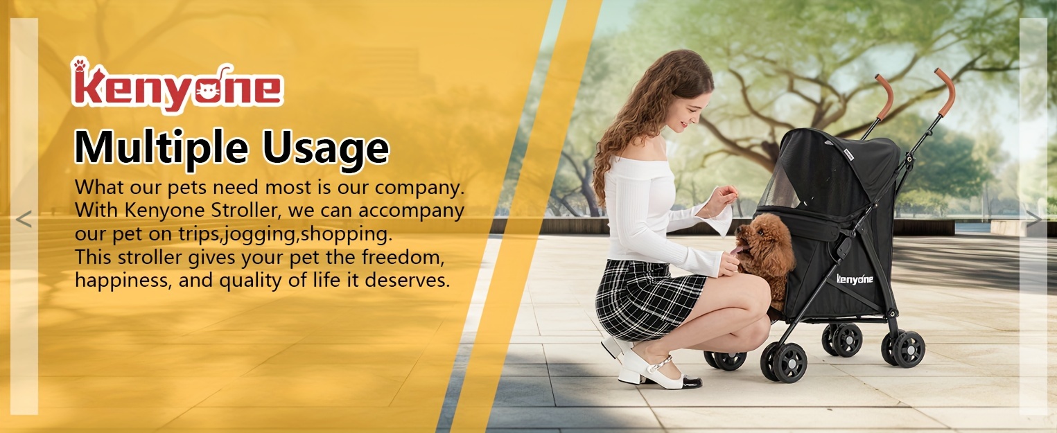 Kenyone Dog Stroller For Small Dogs & Cats - Lightweight, Premium, Portable & Compact Travel Stroller - For Puppies, Small & Medium Dogs & Cats - Suitable for Everyday Walks & Travel - Perfect Gift for Pet Owners