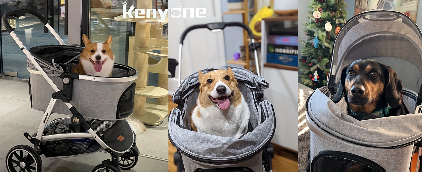 Kenyone Pet Stroller C510 Gray - 3 in 1 Dog Stroller for Medium Small Dogs, Large Cat Stroller with Detachable Carrier for Puppies, Doggies, Kitties, Bunnies - Durable & Lightweight - Suitable for Outdoor Walks & Travel - Ide
