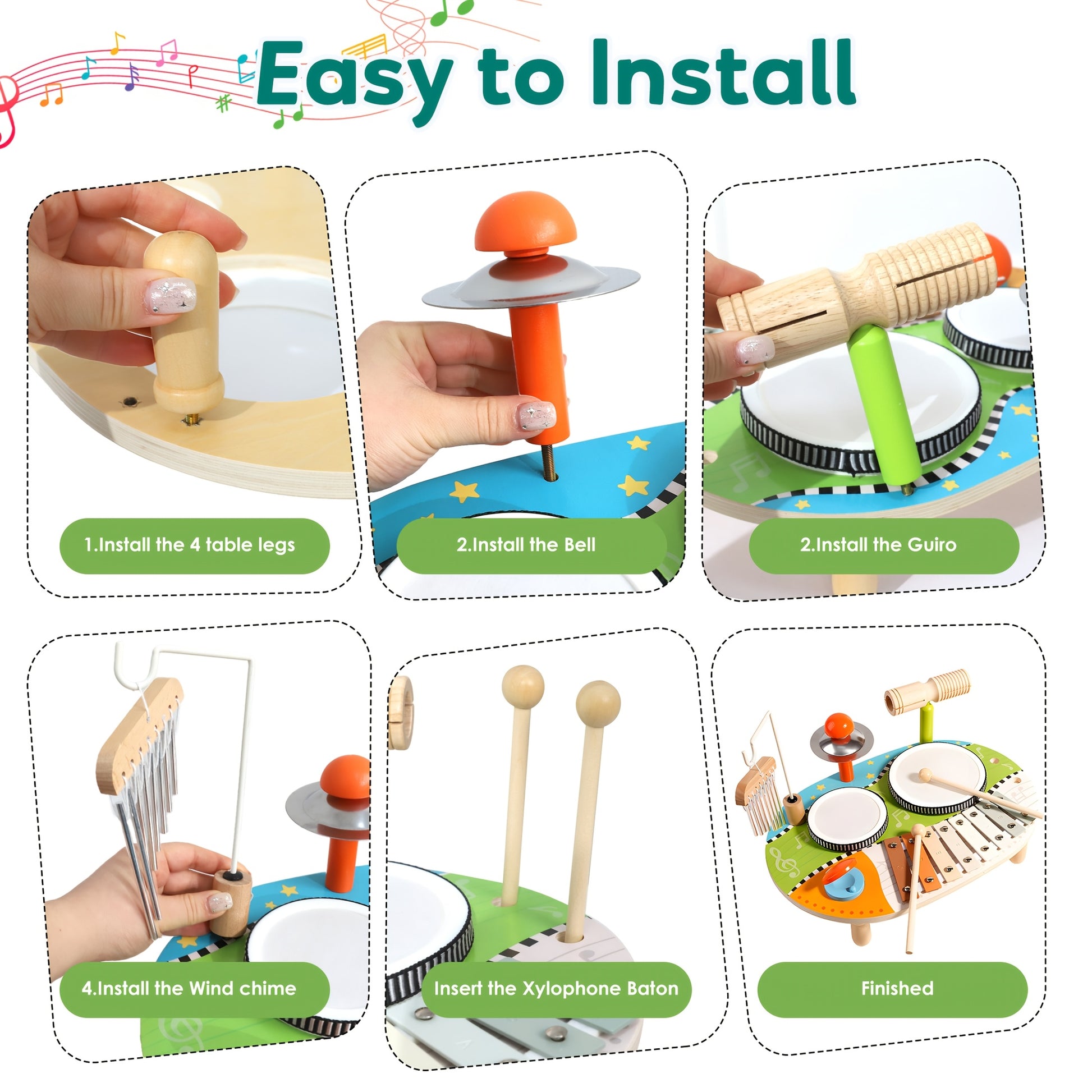 This musical toy set stands out in the preschool learning category by offering a comprehensive approach to music education. Unlike typical toy sets, our unique blend of percussion and melodic instruments enables children to explore different sounds and rhythms, promoting auditory skills and cognitive growth. It's more than just play; it's a crucial step in your child's developmental journey.