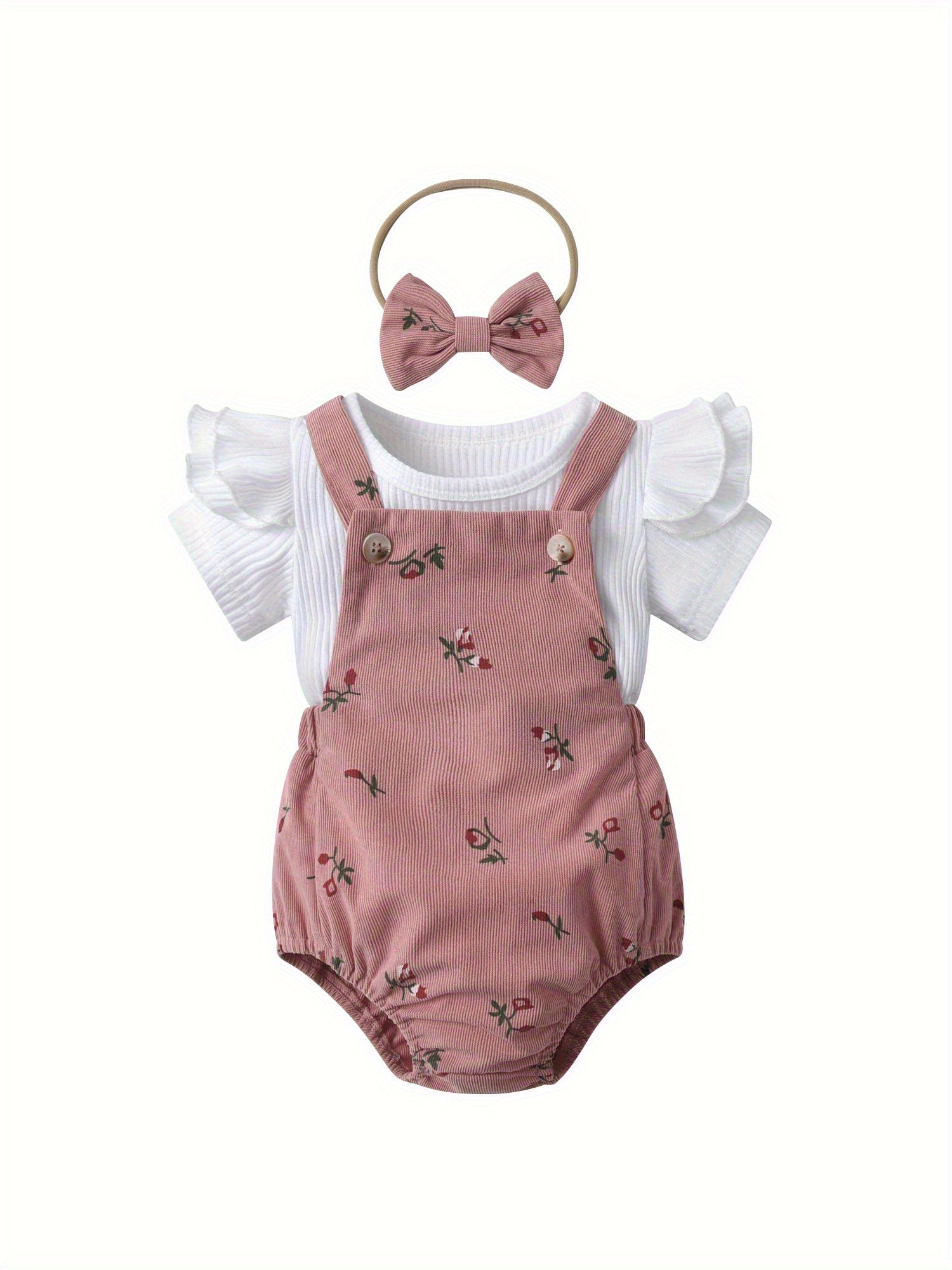 KUKITTY Baby Girl Newborn Summer Outfit - Soft Pink Ruffled Sleeve Romper with Matching Headband, Breathable Snap Snap & Soft Fabric Shorts, Casual Casual Attire, Perfect for Outdoor