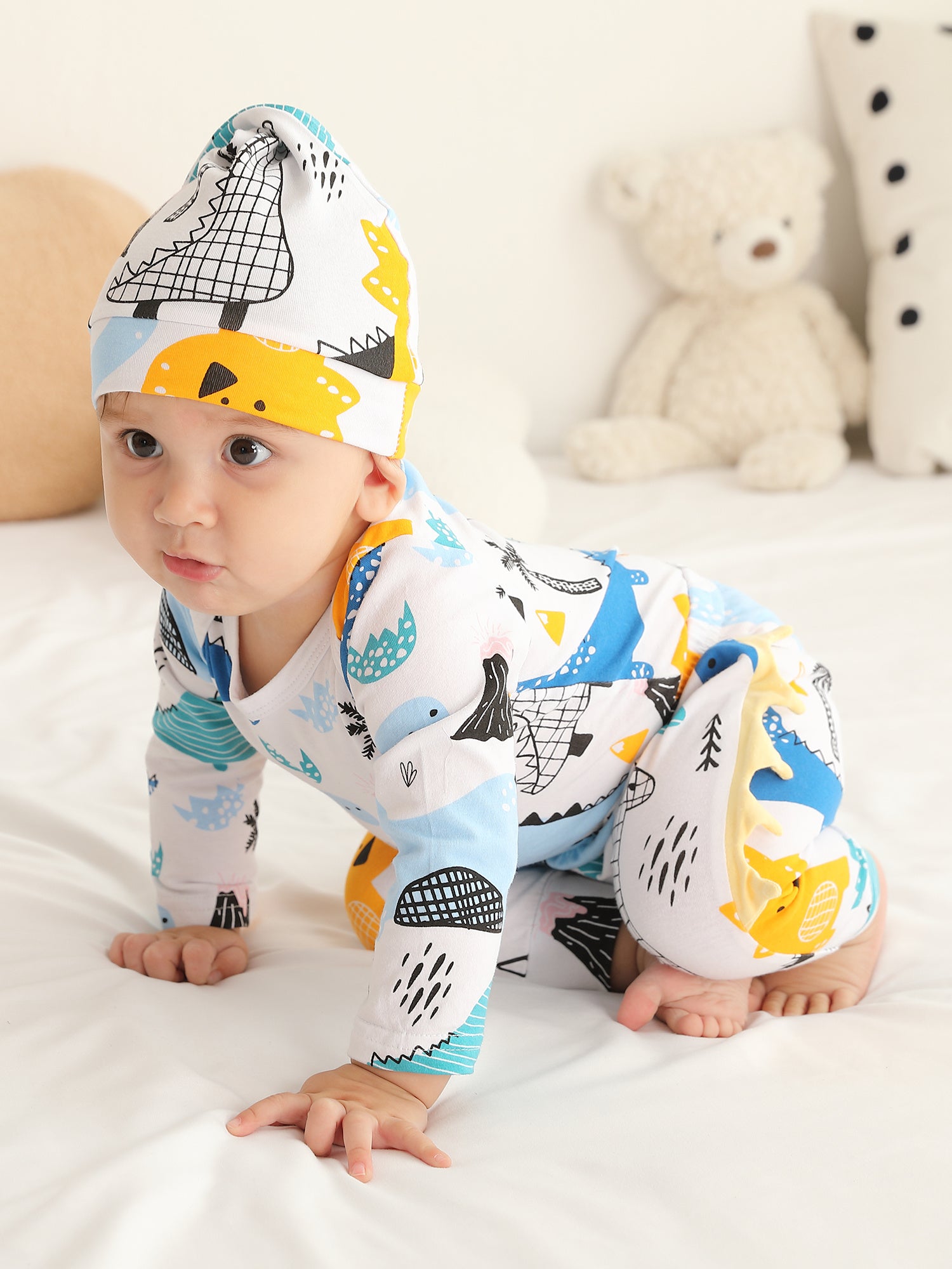 - Dinosaur-inspired color-block design: playful, baby-friendly print that looks adorable in photos
