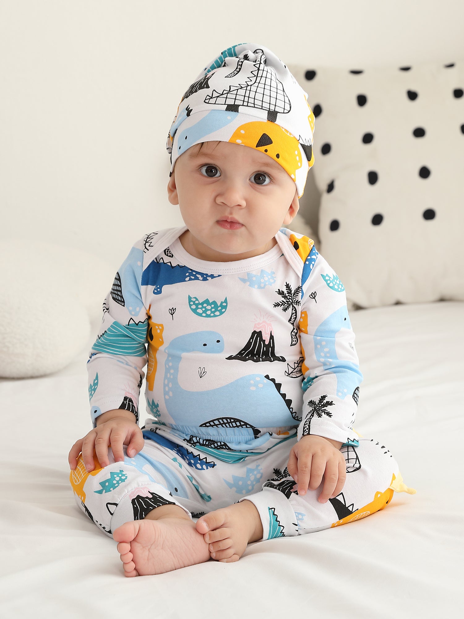 Meet the KuKitty Newborn Baby Boy 3pc Cotton Long Sleeve Romper Top Pant Hat Dinosaur Outfit Set — a complete, comfy ensemble designed for tiny explorers. Crafted from soft, breathable cotton with a touch of stretch, this 3-piece set keeps your little one cozy from first smiles to nap-time adventures.