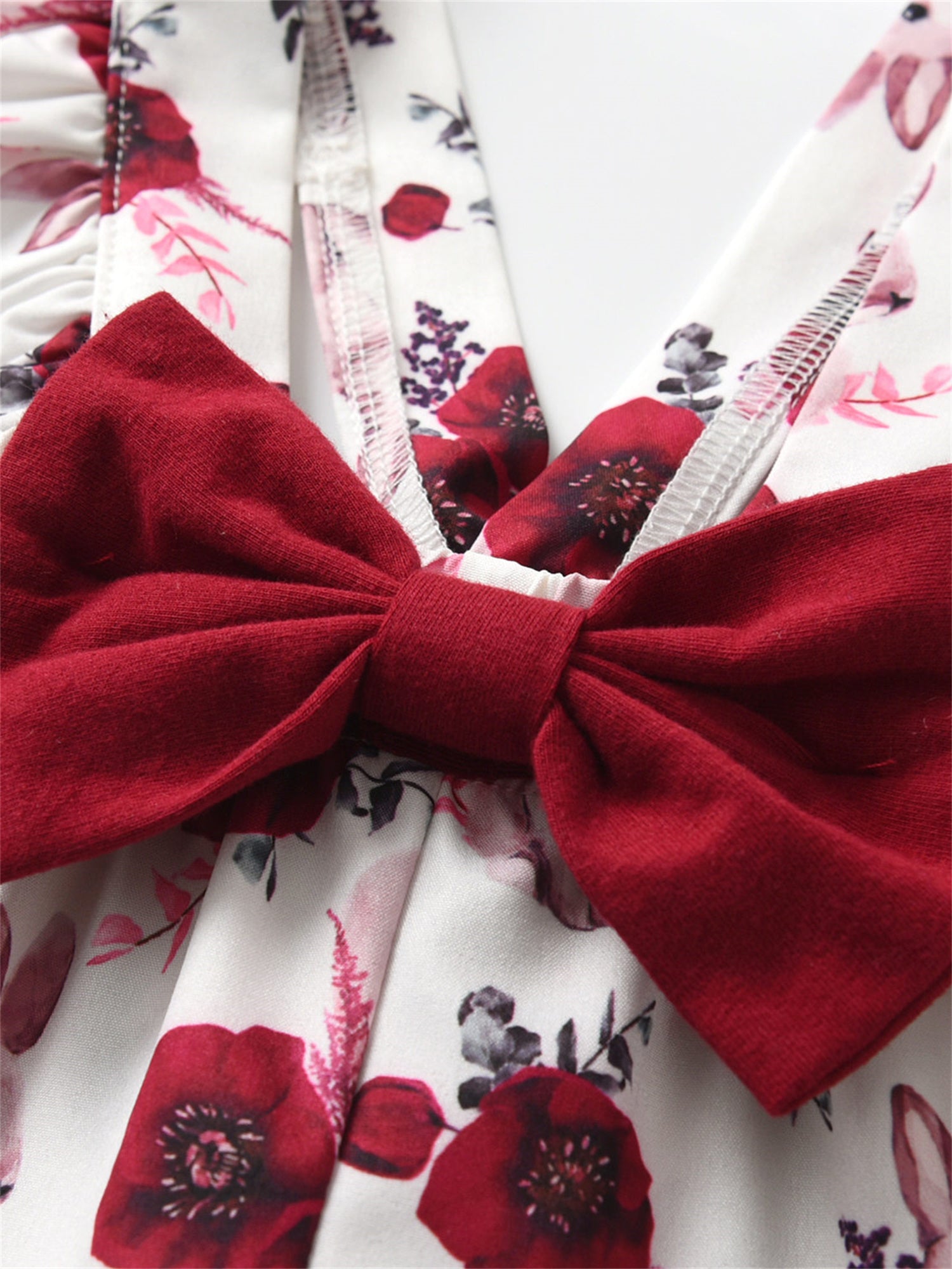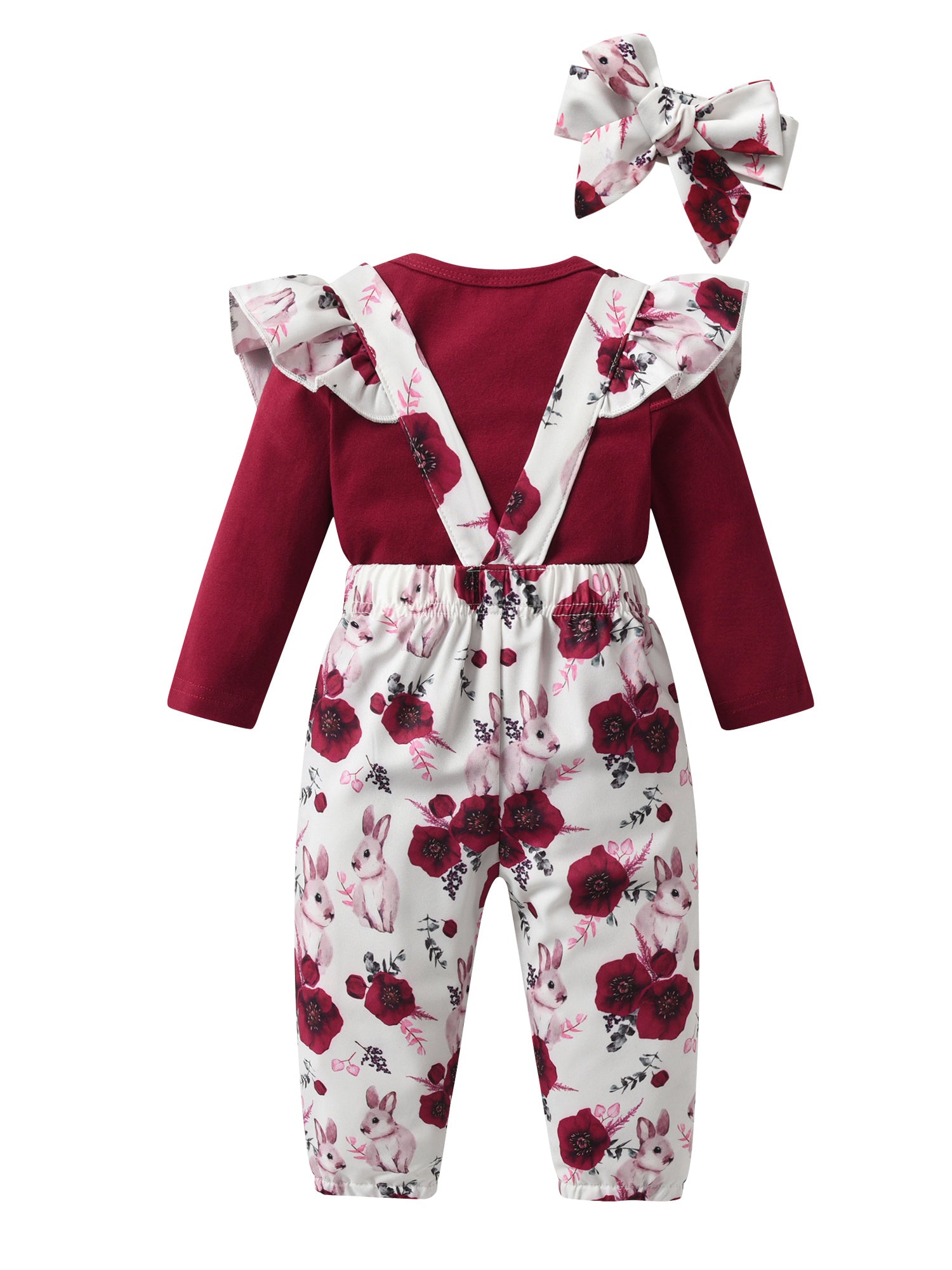 - Three-piece outfit: A long-sleeve floral bow romper, coordinating knit pants, and a soft headband create a complete, easy-to-wear look.