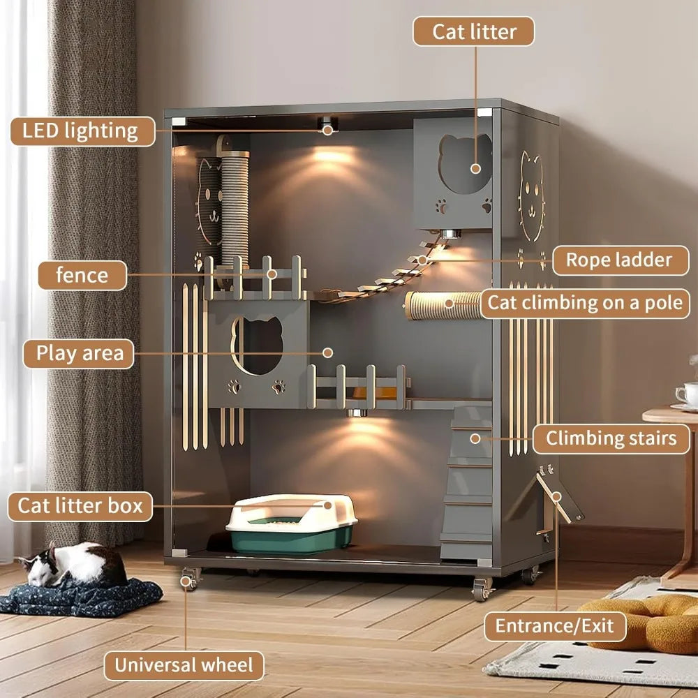 Transform your home into a cozy haven for your beloved pets with our Large Enclosed Cat Condo Wooden Cat Villa. Don’t miss out on giving your cats the luxury they deserve—order yours today!