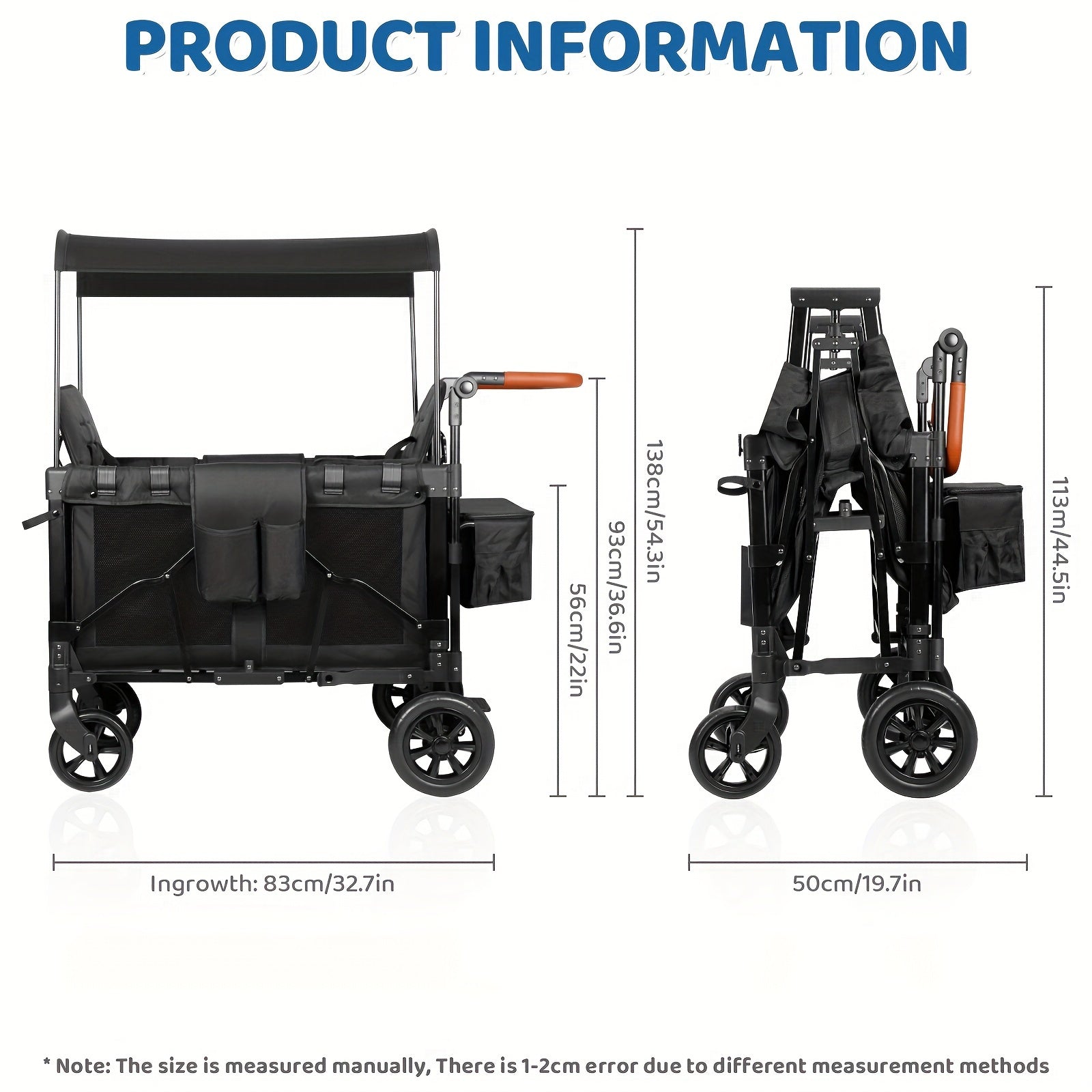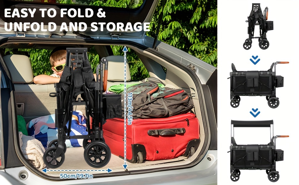 Luxury Comfort Stroller Wagon | Foldable 2 Passenger Double Seater With Adjustable Canopy | Black