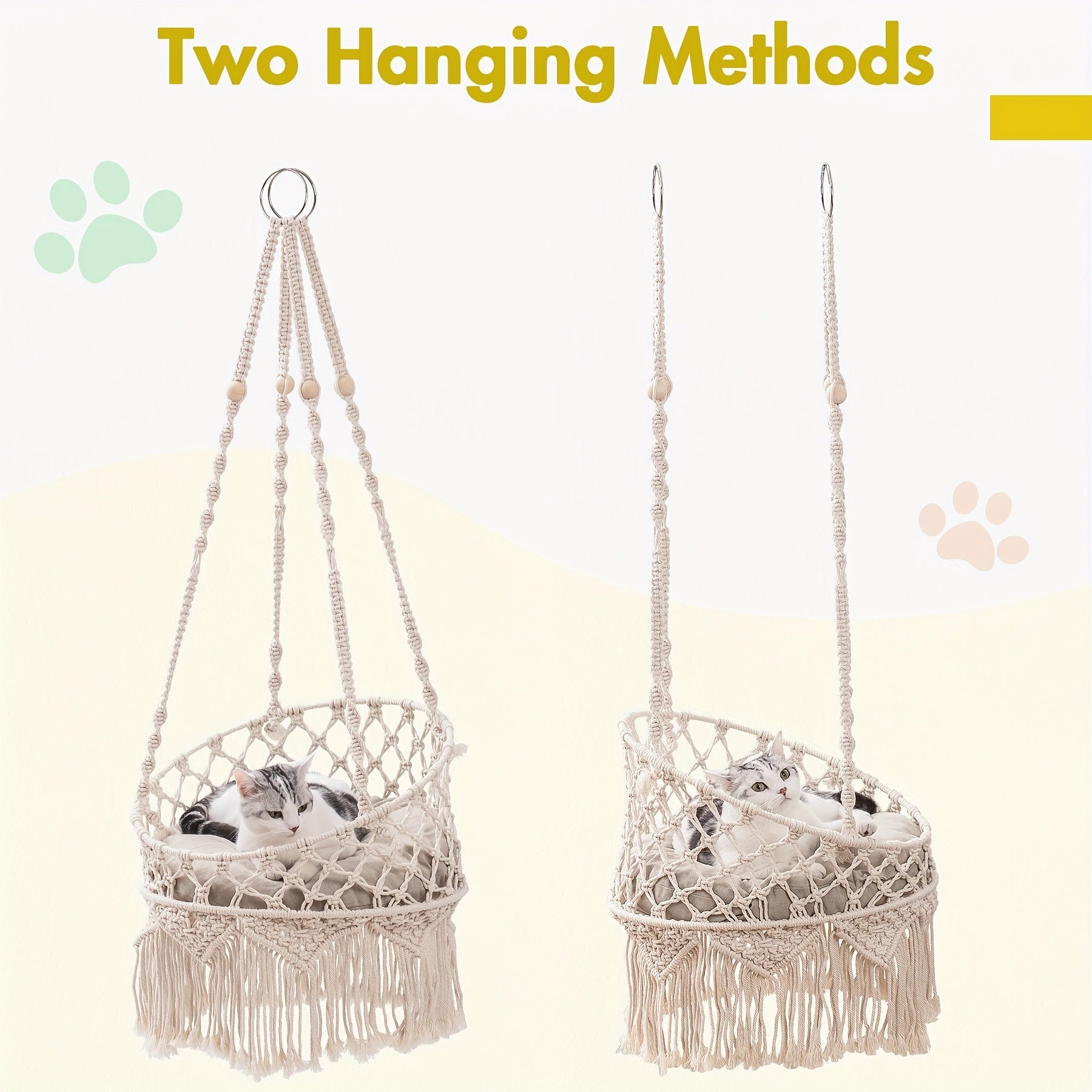 Mewoofun Bohemian Cat Hammock Swing Bed Handwoven Cotton Tapestry With Cushion
