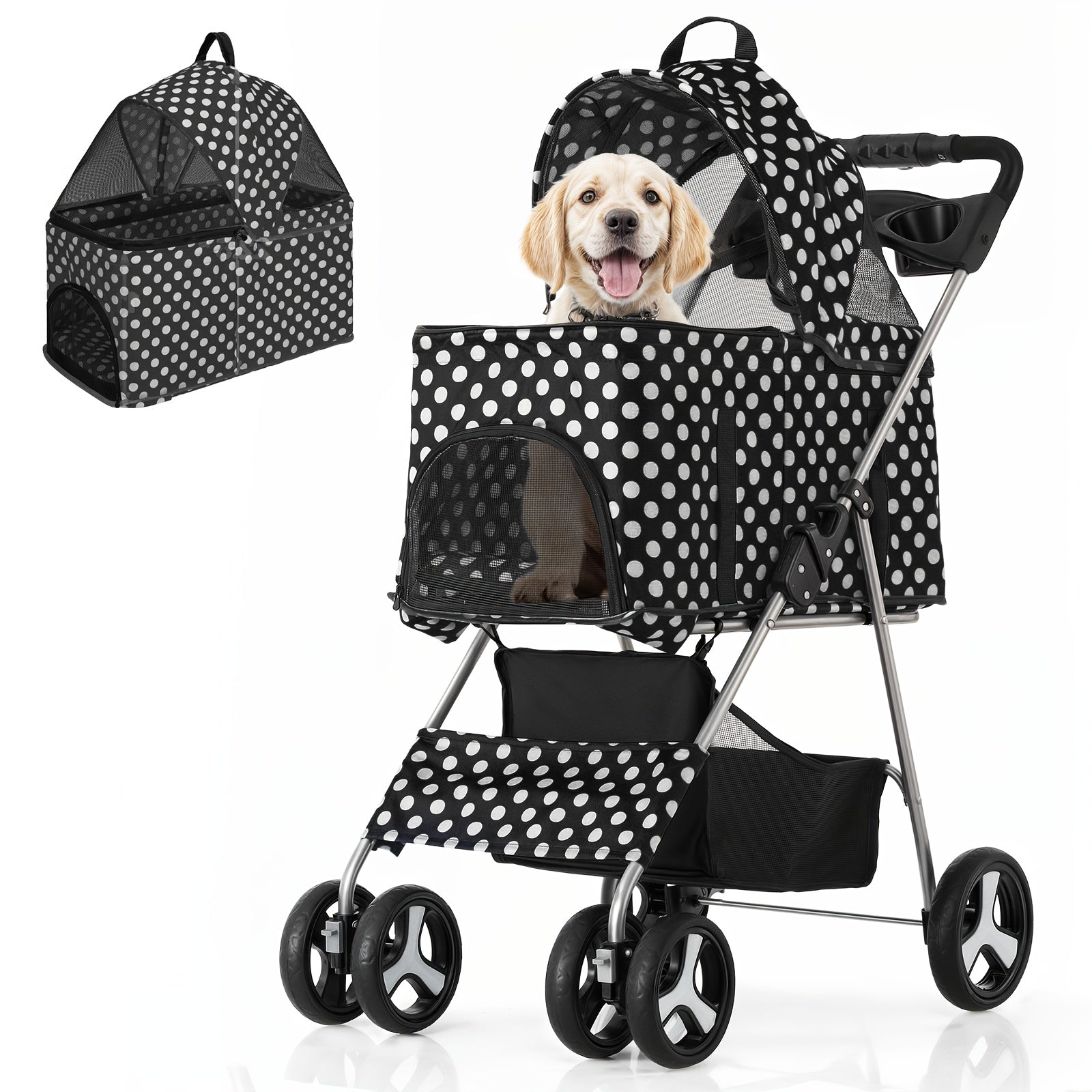 MoNiBloom 3-in-1 Foldable Pet Stroller Detachable Carrier, Car Seat and Stroller with Push Button Entry for Small Pets, Dog Stroller for Medium Dogs Load Up to 33 lbs