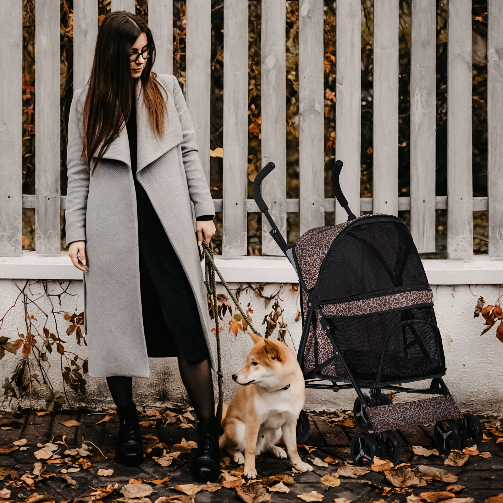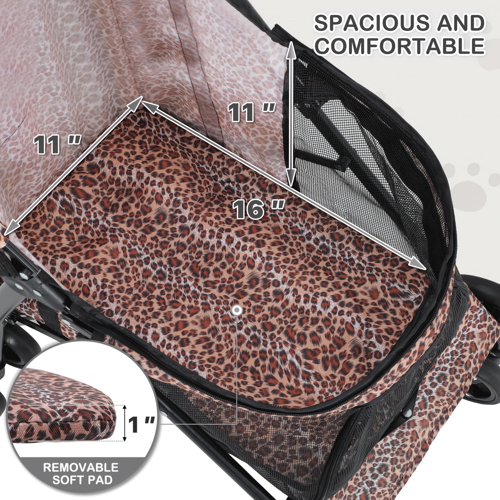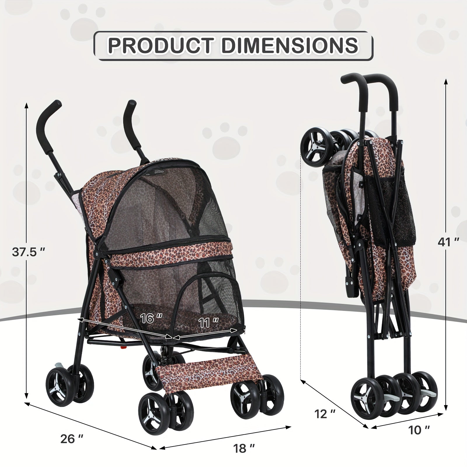 MoNiBloom 4-Wheel Pet Stroller for Small/Medium Dogs up to 22 lbs - Easy-Fold Jogger Stroller with Sun Cover, Breathable Mesh, Rear Storage Bag & Cushioned Pad - Durable Nylon Design for Outdoor Walks & Travel, Visible Mesh P
