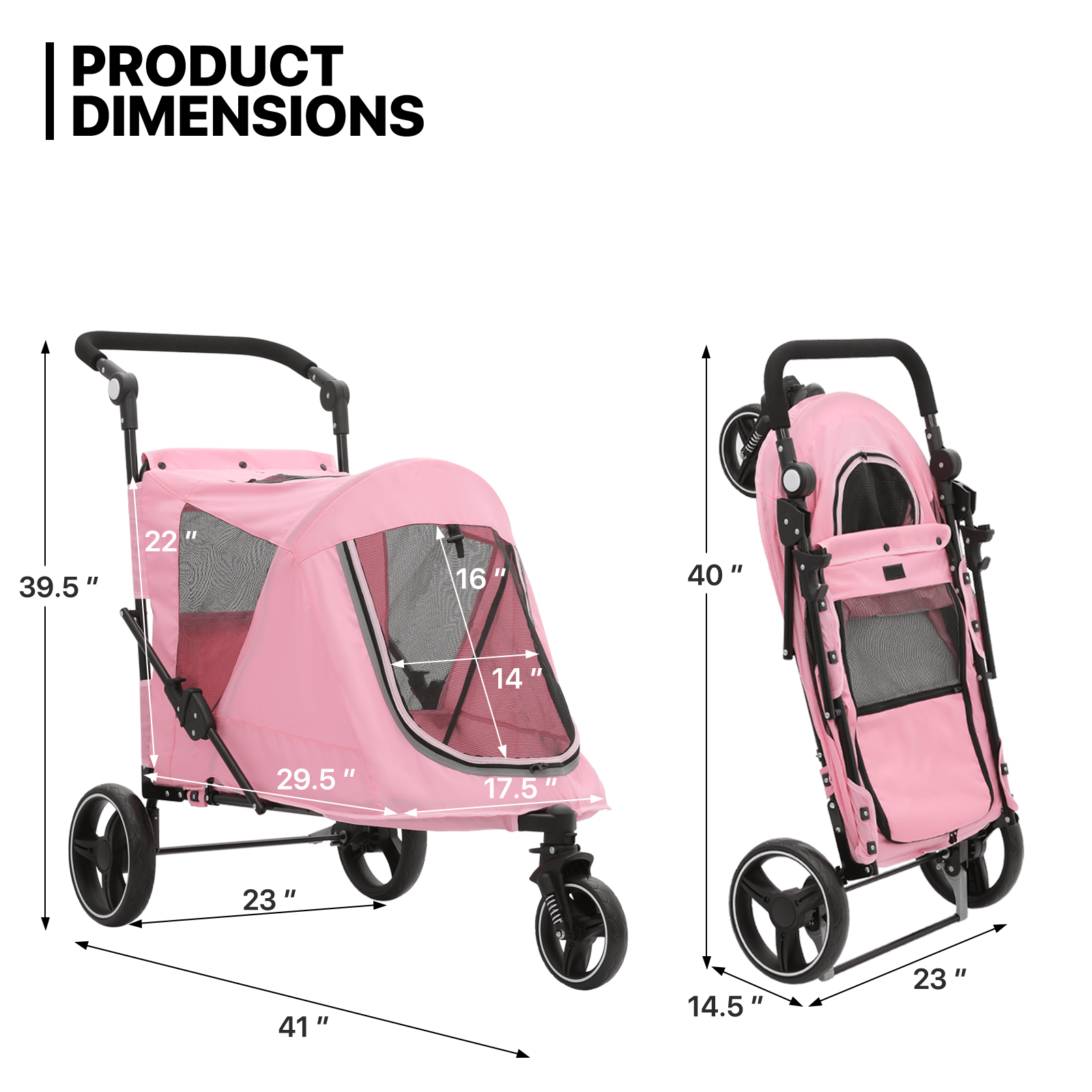 MoNiBloom Pet Stroller for Large Dogs or Multiple Dogs Cats with Adjustable Handle, 3-Wheels Dual Entry Portable Dog Carting Easy Folding Pet Wagon Double Dog Stroller