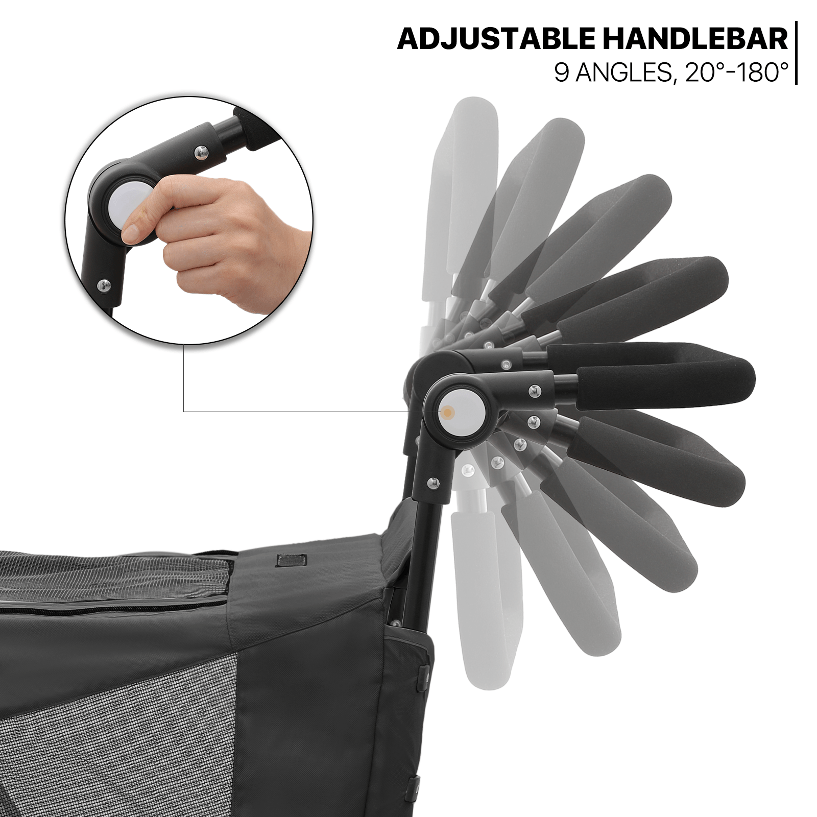 · Adjustable Multi-Position Handle - Experience the perfect blend of comfort and adaptability with our pet stroller's adjustable multi-position handle.