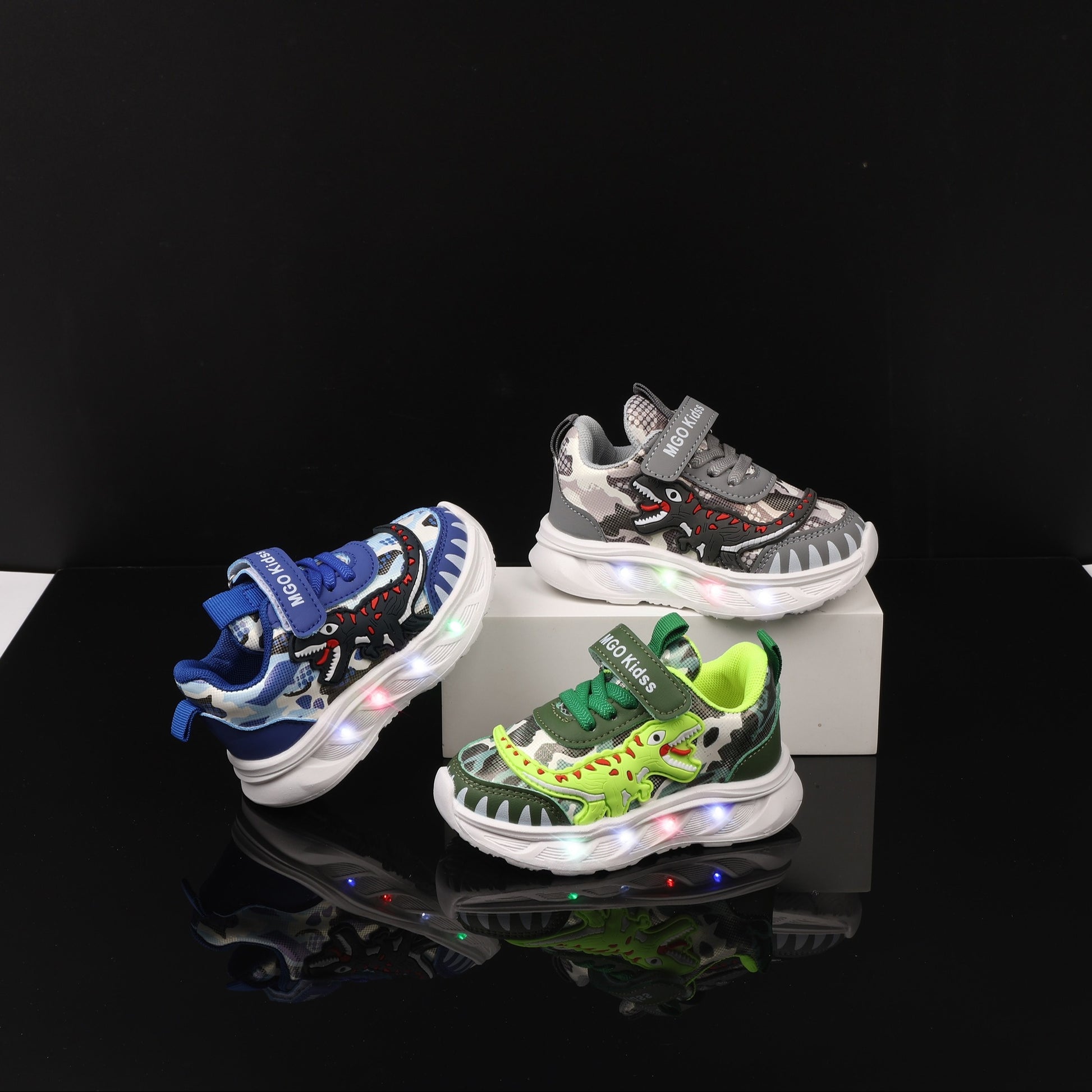 Moolsun 2025 Spring Cartoon Dinosaur Sports Shoes with LED Lights for Boys and Girls