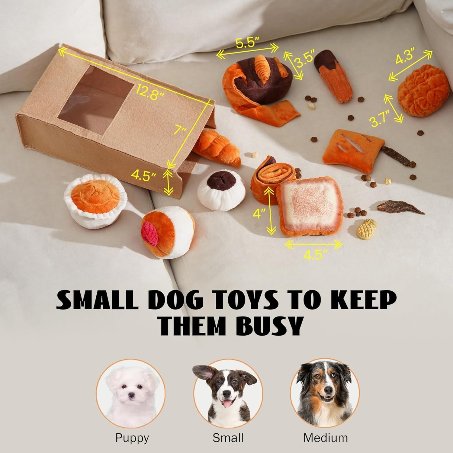 Nocciola 10 Piece Plush Bread Dog Toys Set with Crinkle Squeakers for Small Dogs