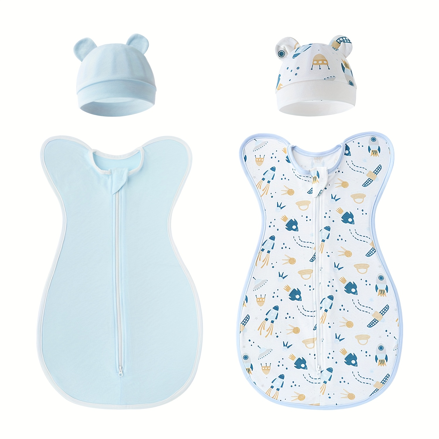 Set Of 2 Super Soft Newborn Sleeping Bags (Suitable for 0-6 Months) - Double Zipper, Breathable And Soft, Kids Wearable Blanket with Matching Hood, Suitable for Newborn Kids Girls, Great Newborn Gift