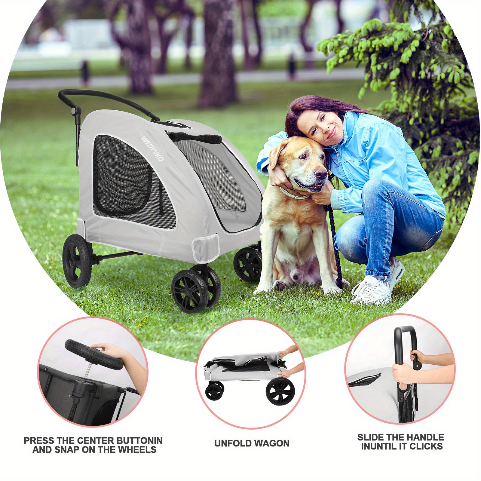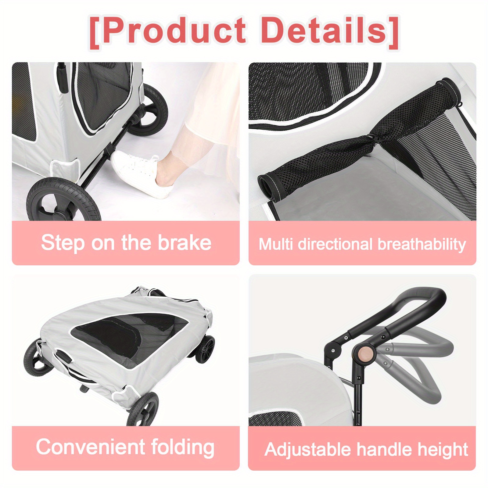 Spacious Pet StrollerRoomy For Pets Up To 120lbs (54kg). 3-sided Mesh For Airflow & Security. 360° Silent Wheels & 3-angle Adjustable Handle For Easy Maneuvering. One-step Fold For Compact Storage.