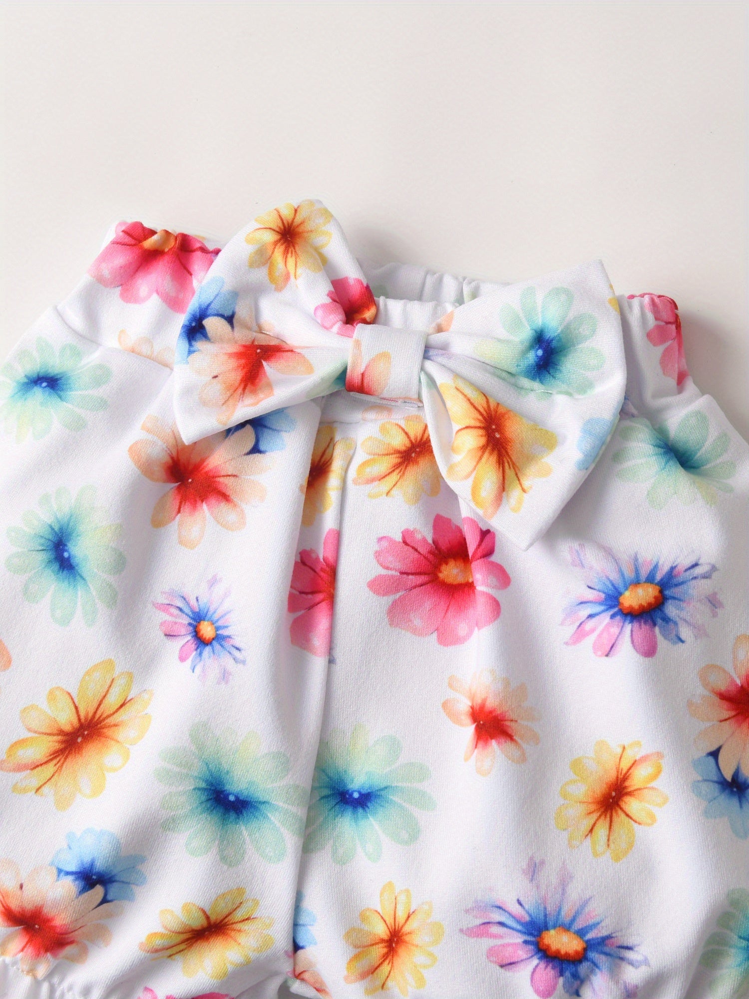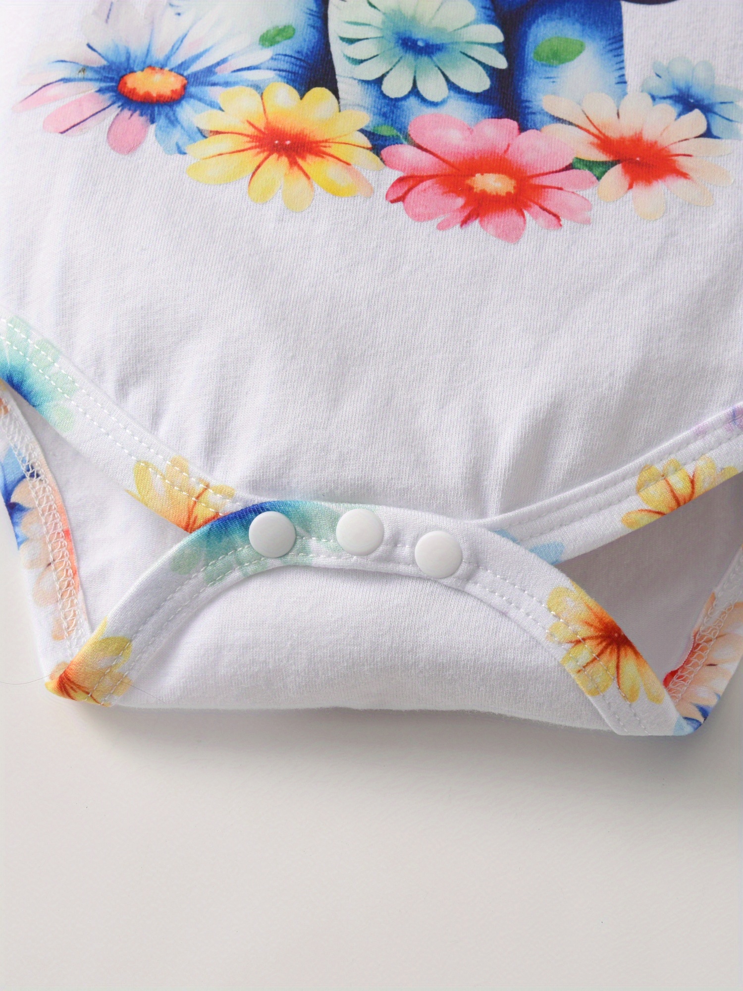 Summer Baby Girl Elephant Print Clothes Set Short Sleeve Romper+Short Pants+Bow Headband Newborn Infant Outfit