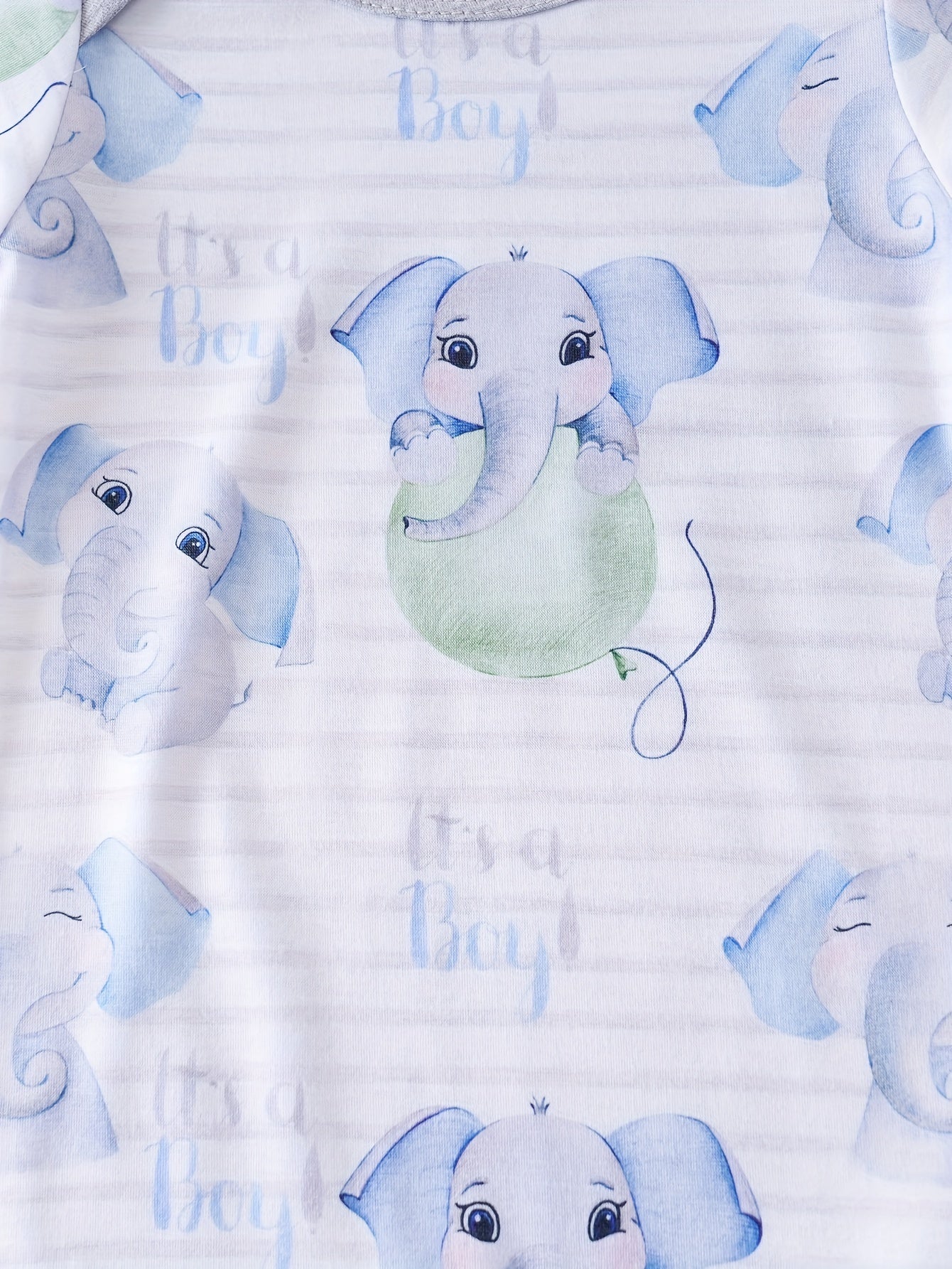 Adorable Summer Elephant Stripes Romper for Kids Cute Cartoon Animal Print Jumpsuit