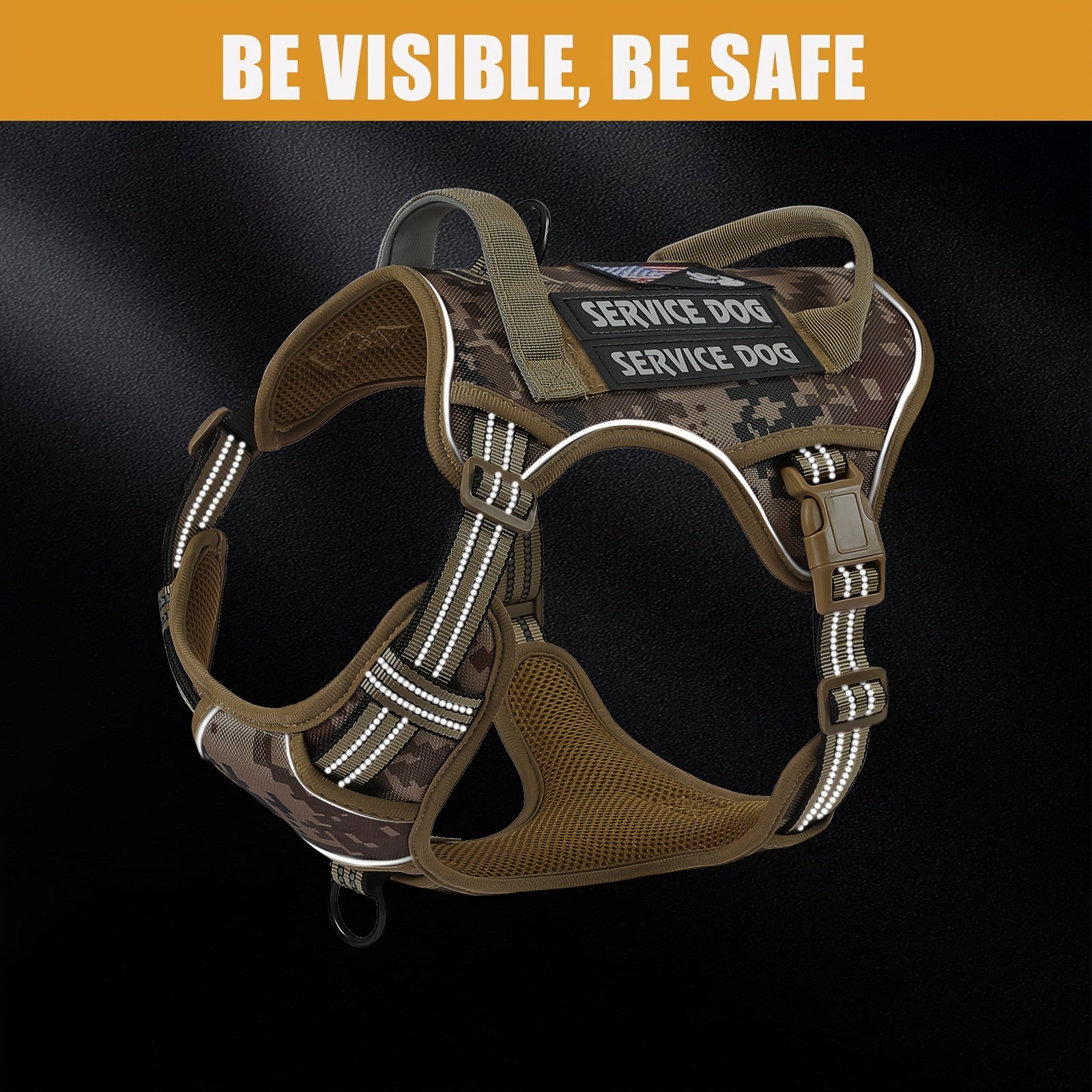 Elevate your dog-walking experience with the Tactical Dog Harness Heavy Duty No Pull Adjustable Reflective Vest, designed for dogs of all sizes. This harness is not just another pet accessory; it’s engineered for both functionality and comfort. Crafted from high-quality polyester fiber, this harness is durable enough to withstand the rigors of outdoor adventures, while its adjustable features ensure a perfect fit for your canine companion.