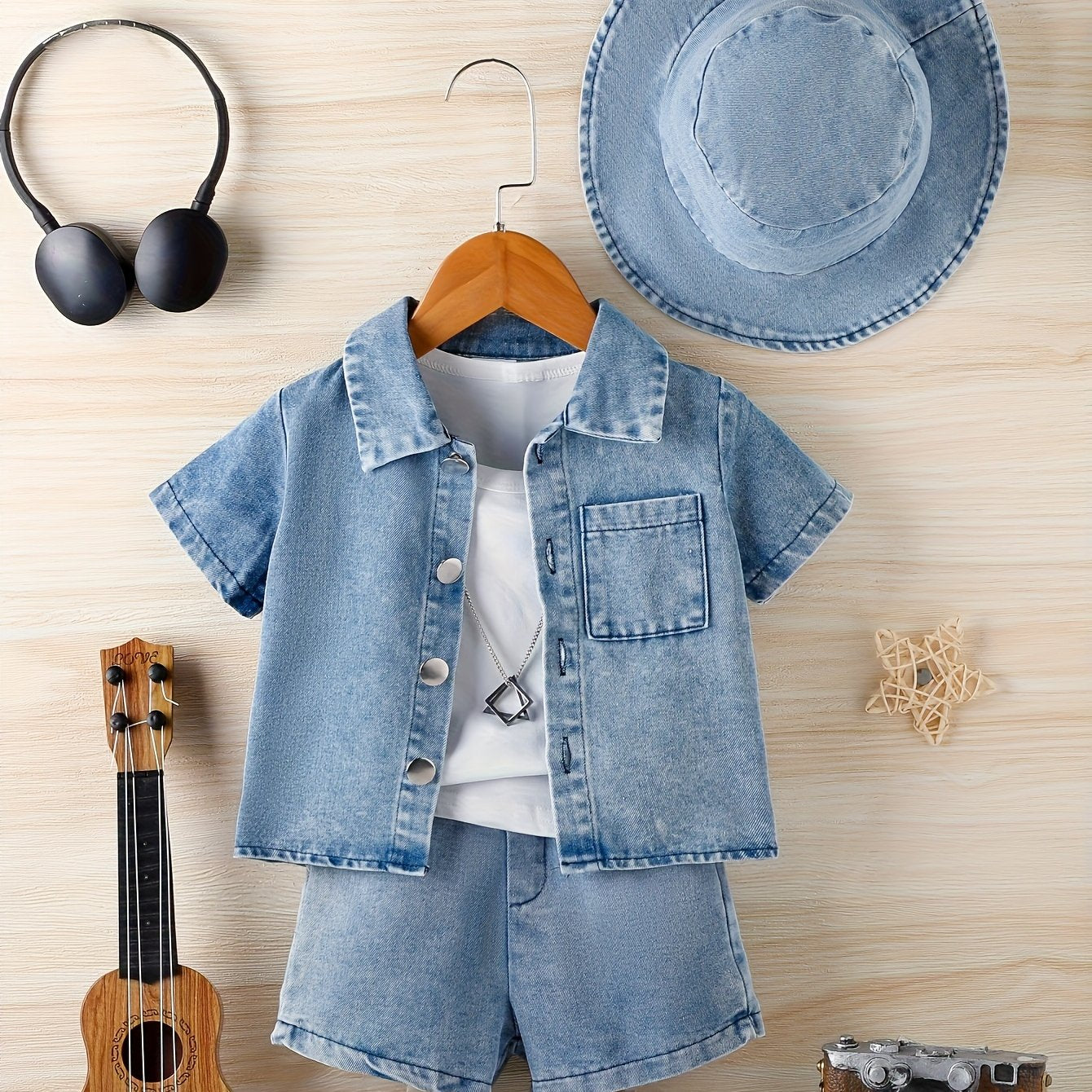 Targeted development of a simple and casual solid-color three-piece set for male infants in spring and summer, Perfect for Outdoor