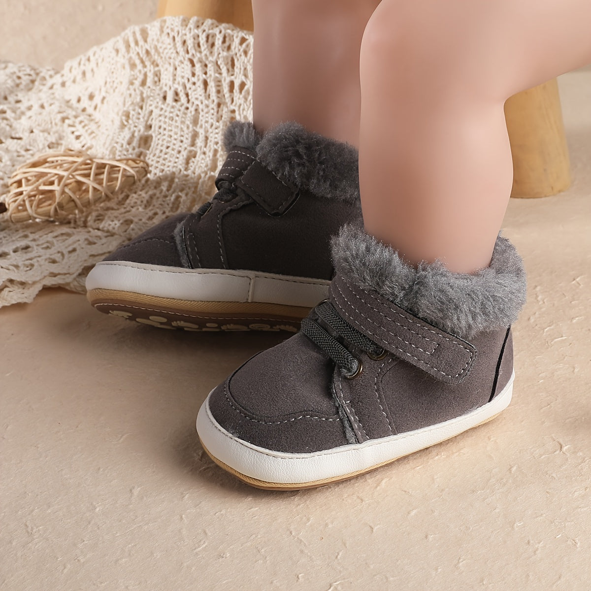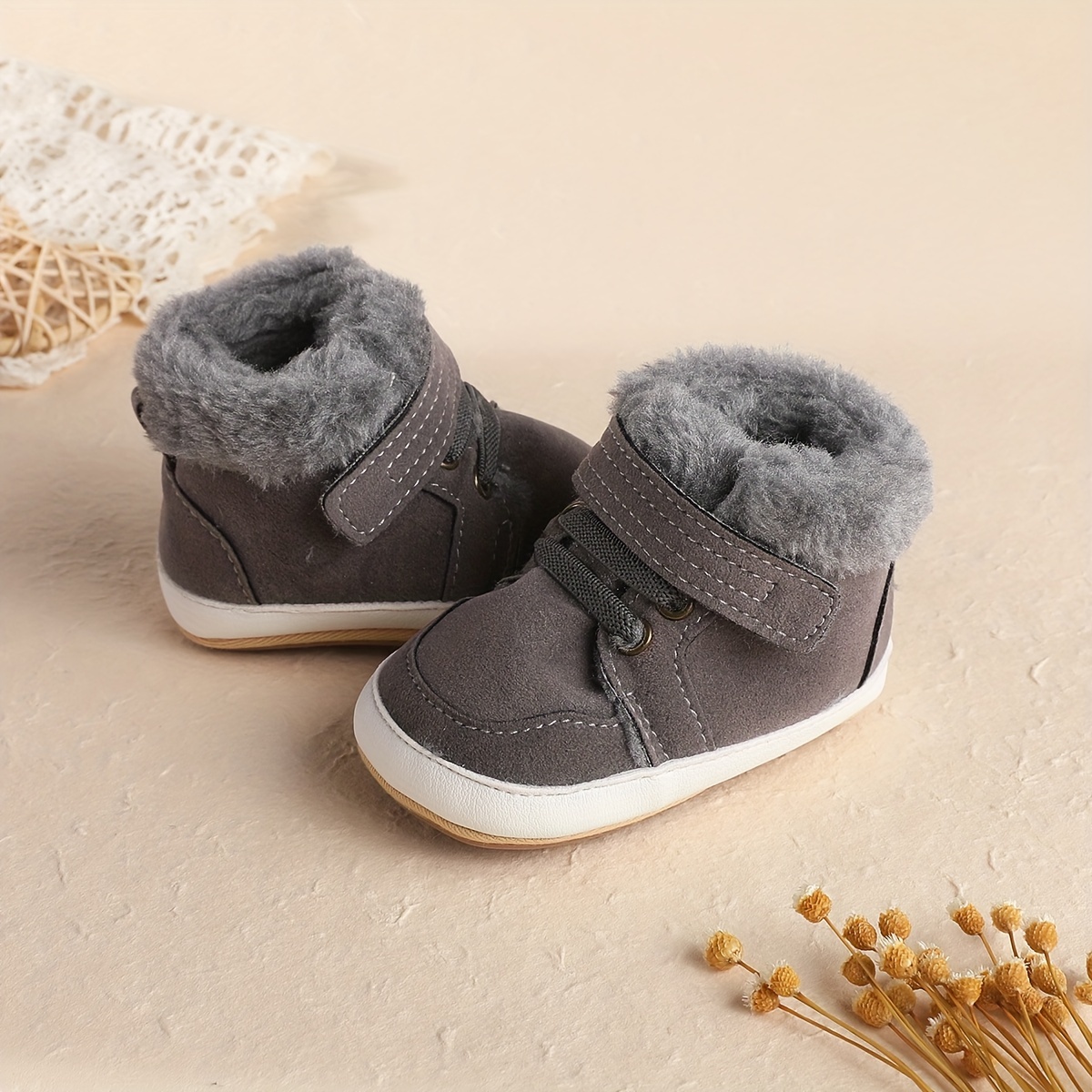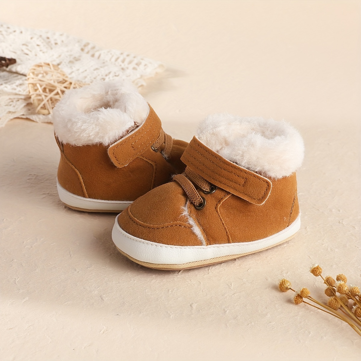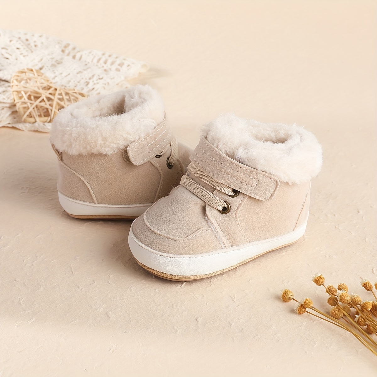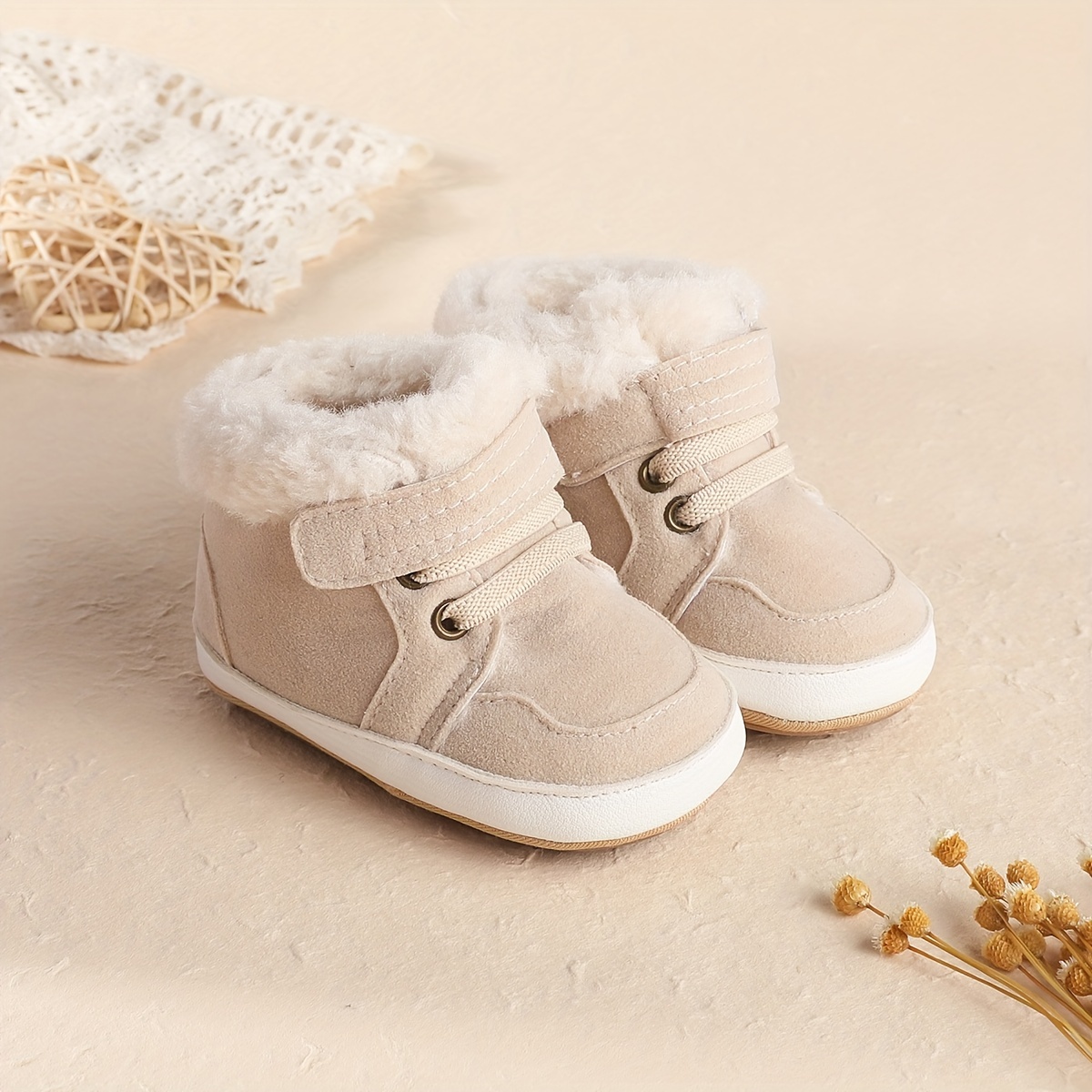 Thickened Baby Fluffy Walking Shoes for Winter, 0-8 Months, with Added Fluff, Thickened Anti-Slip Warm Shoes, Rubber Sole Baby Walking Shoes, Baby Walking Shoes, Baby Soft Rubber Sole Warm Boots, Baby Shoes