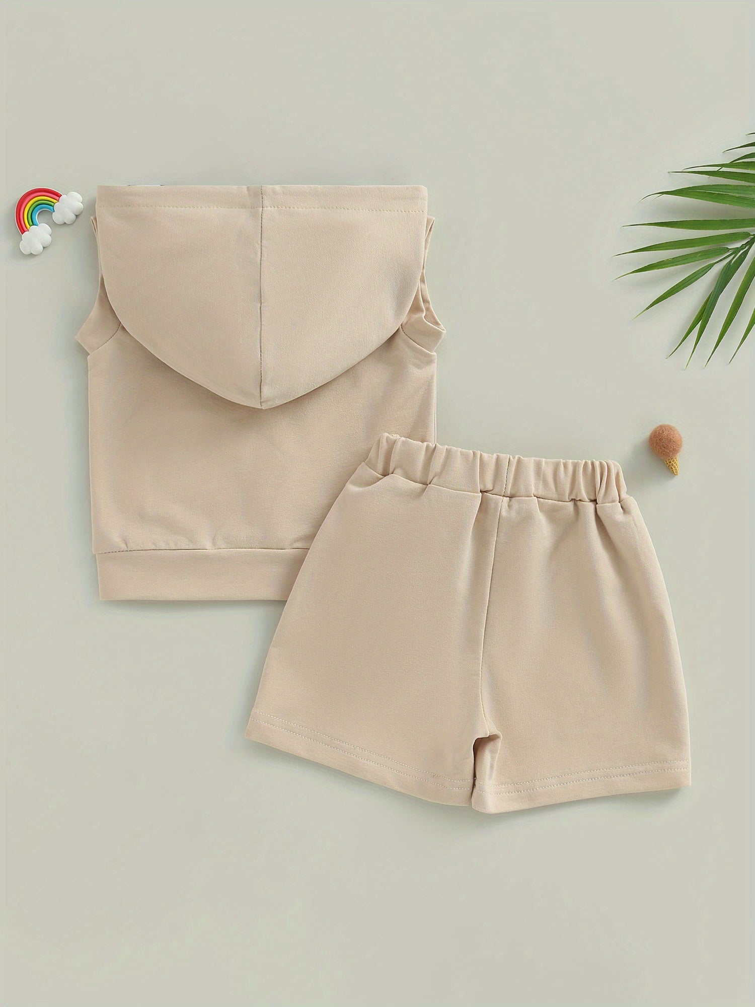 This toddler set is an ideal choice for family outings, playdates, or even just a day at the park. Its lightweight fabric and breathable design make it a must-have in your child's summer wardrobe. Unlike typical toddler outfits, this set stands out with its unique hooded vest, providing a fashionable twist that is both practical and stylish.