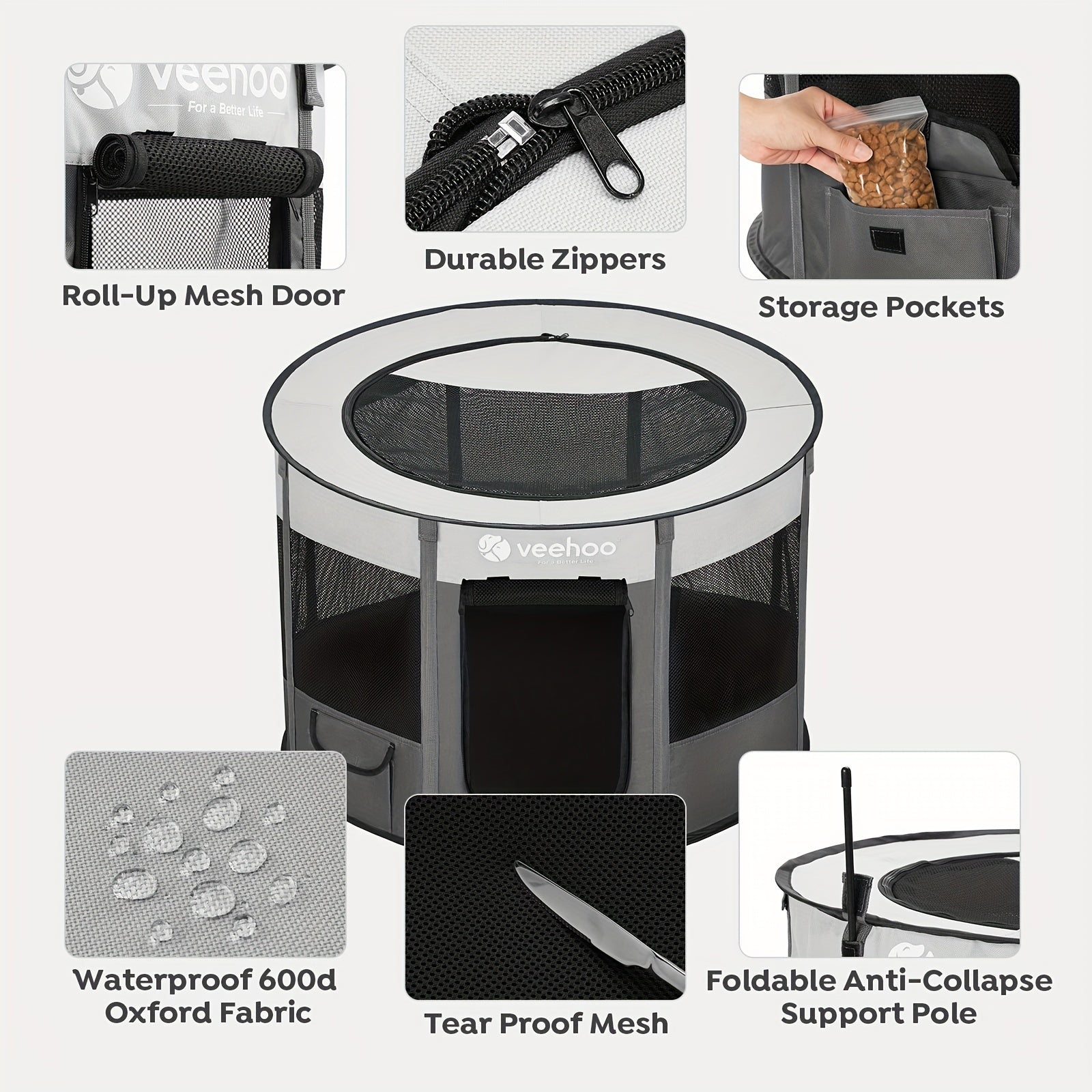 Whether you're at home, in the backyard, or on the go, the Veehoo Foldable Portable Dog Playpen is your best companion for a worry-free pet experience. Don't miss out on this essential accessory for your dog. Order yours today and give your pet the space they deserve!