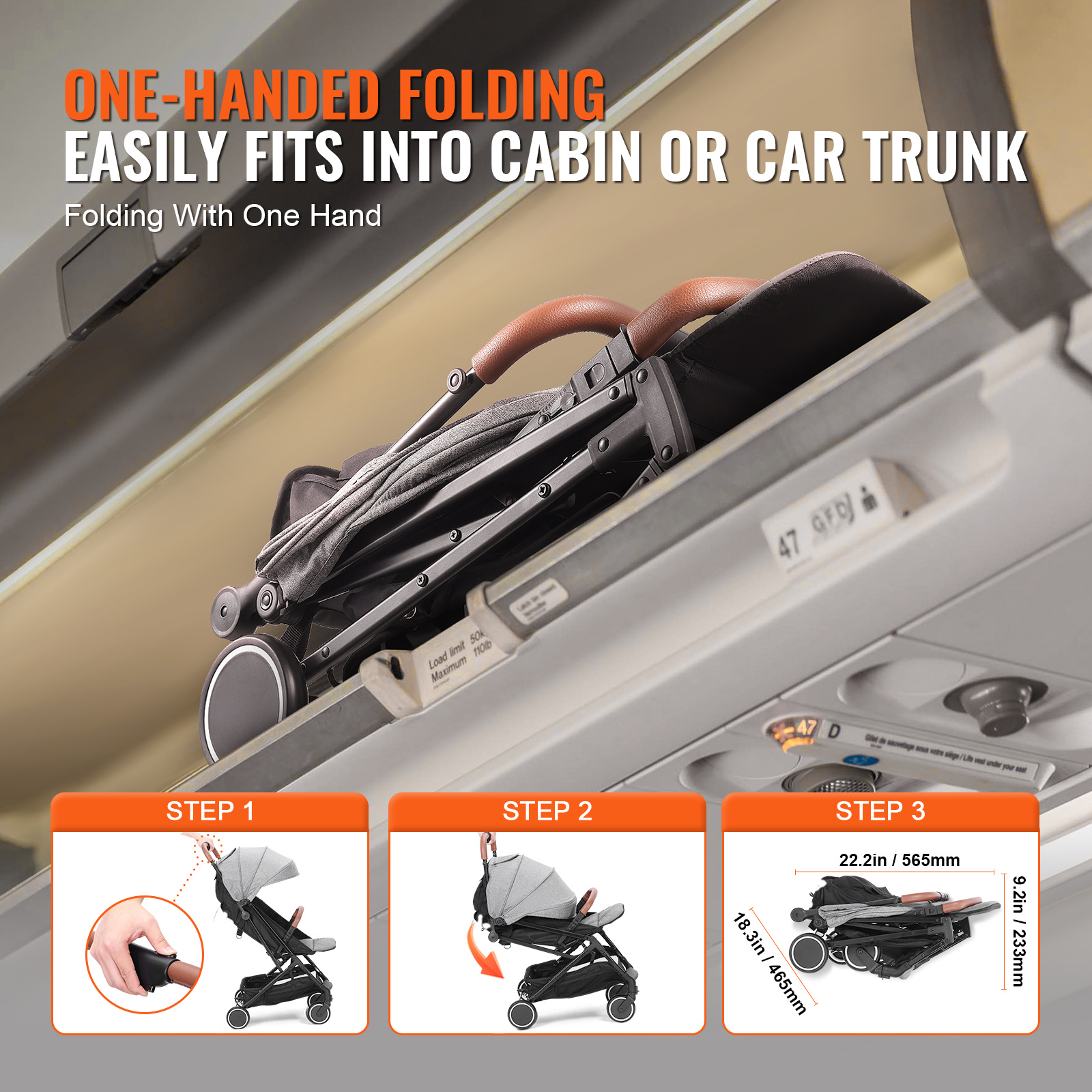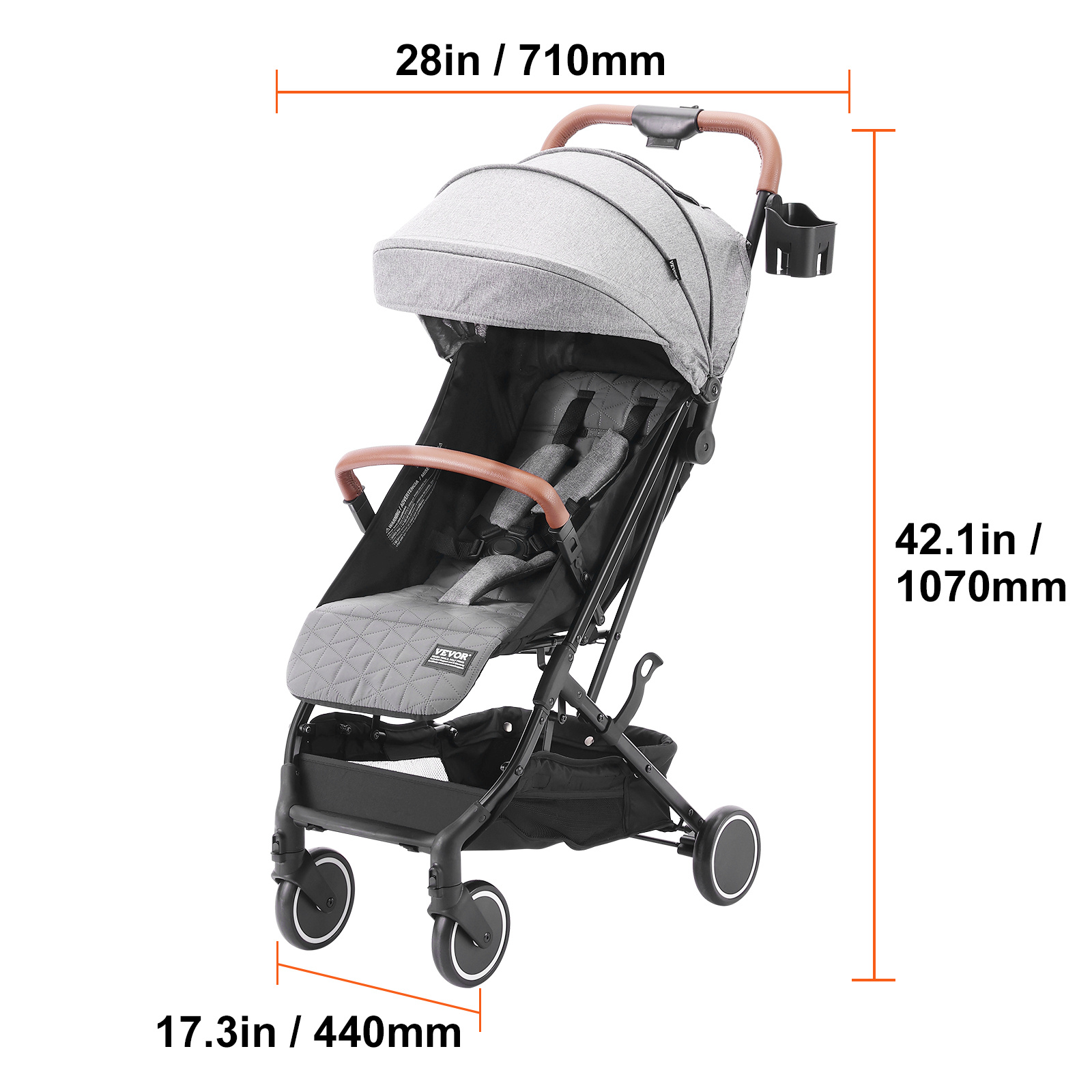 VEvor Dark Grey Standard Stroller - Adjustable Backrest & Footrest, One-Click Fold, Cup Holder - Carry Bag Included
