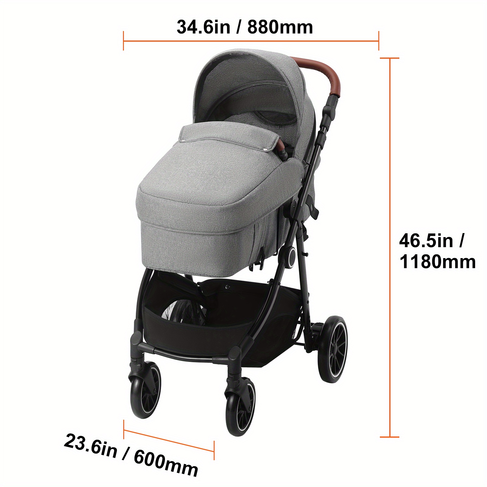 VEVOR Standard Baby Stroller, Infant Toddler Stroller with Bassinet, 3rd-Gear Adjustable Backrest & Foldable & Reversible Seat, Carbon Steel Newborn Stroller with Leg Cover and Mesh Net, Dark Grey