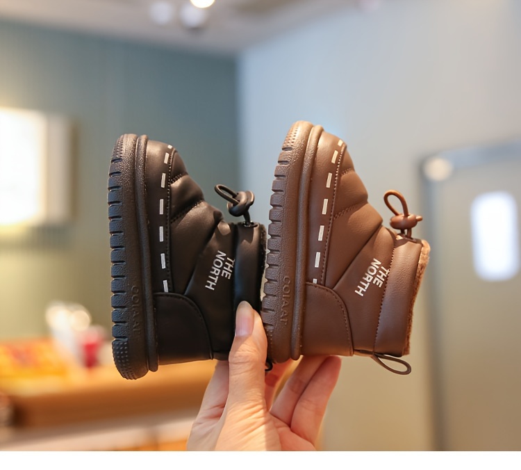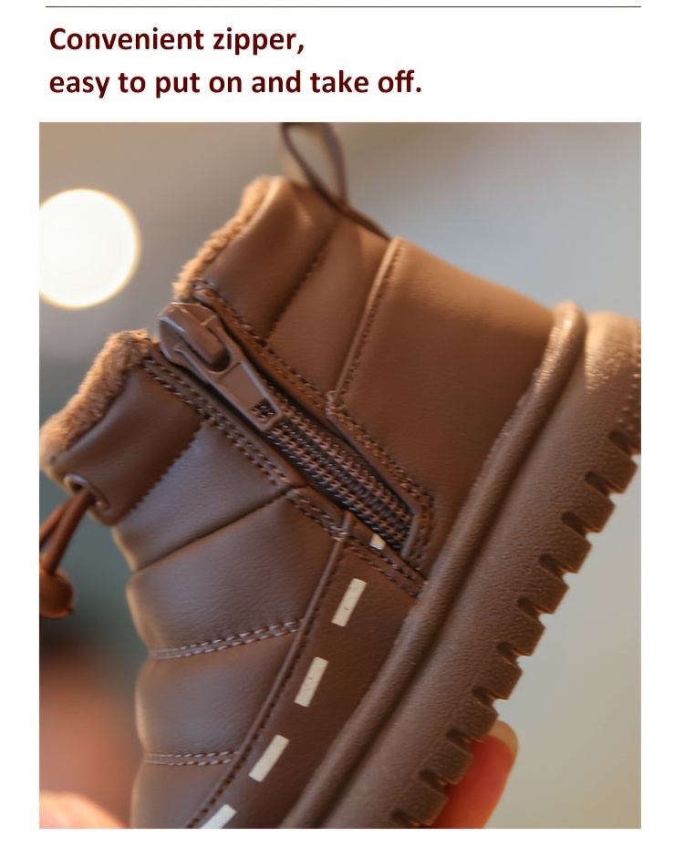 Vintage Preppy Casual Round Toe Zipper Low Top Fabric Upper Fabric Inner Fabric PVC Sole Casual Stripe Children'S Snow Boots for Baby Boys and Girls, with Fleece Lining