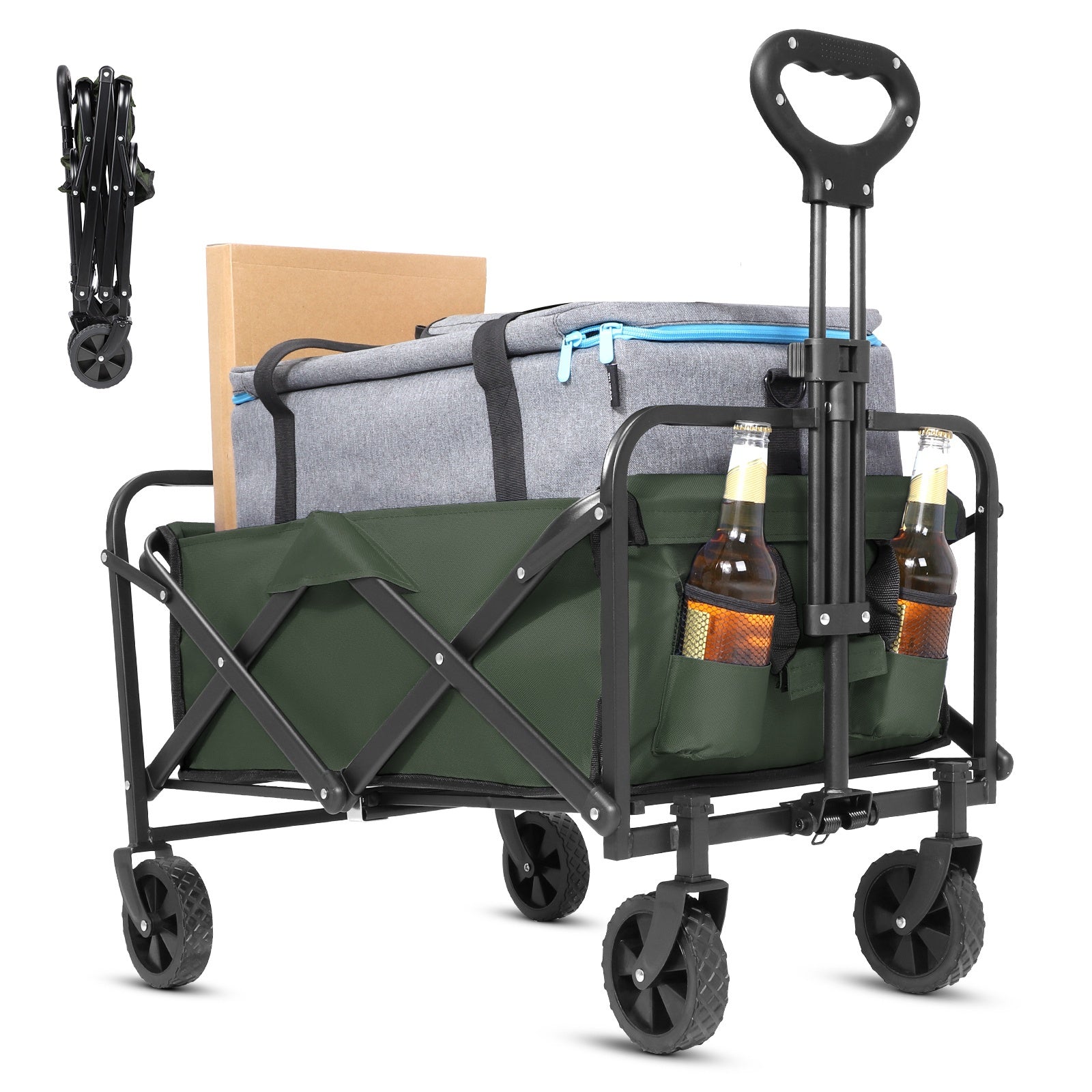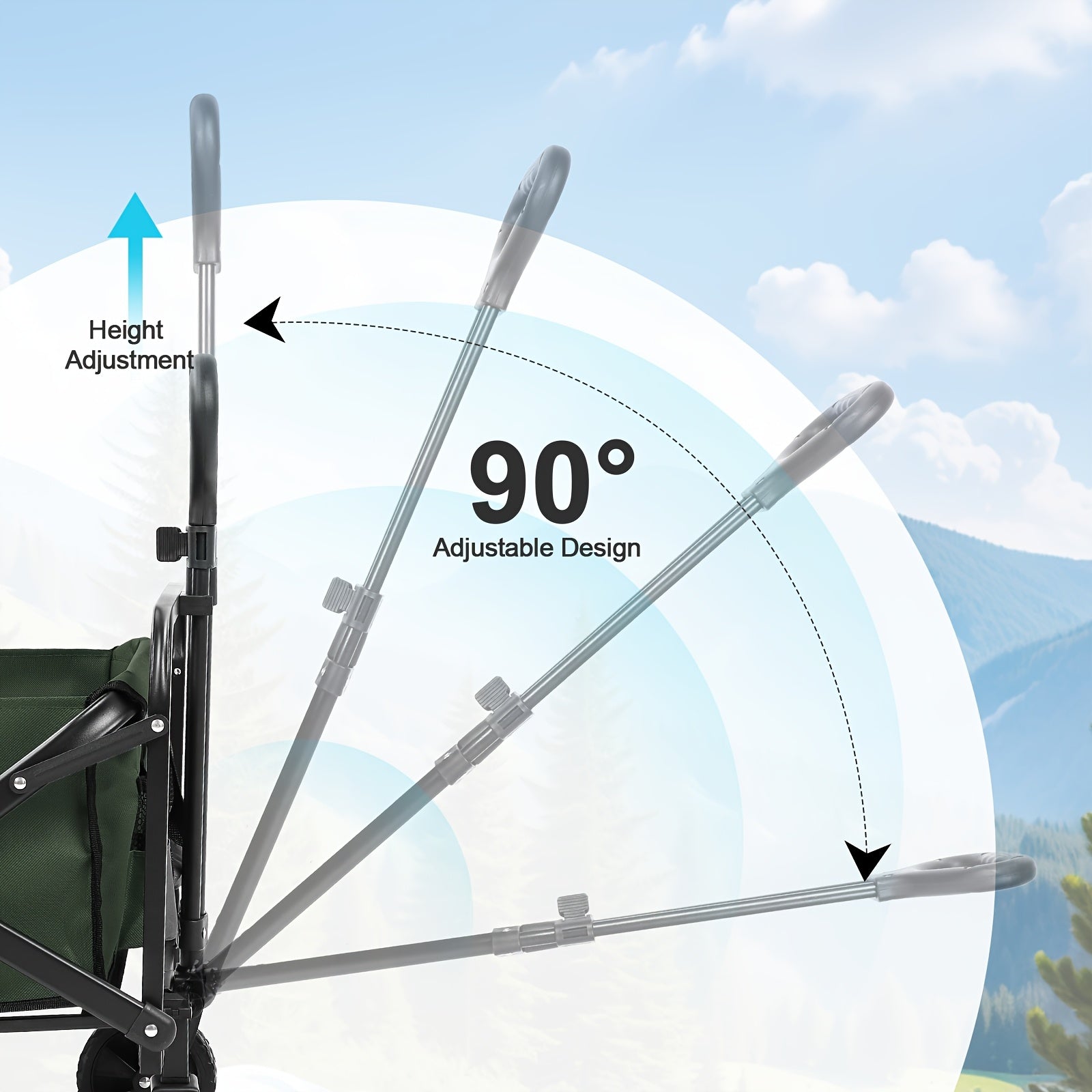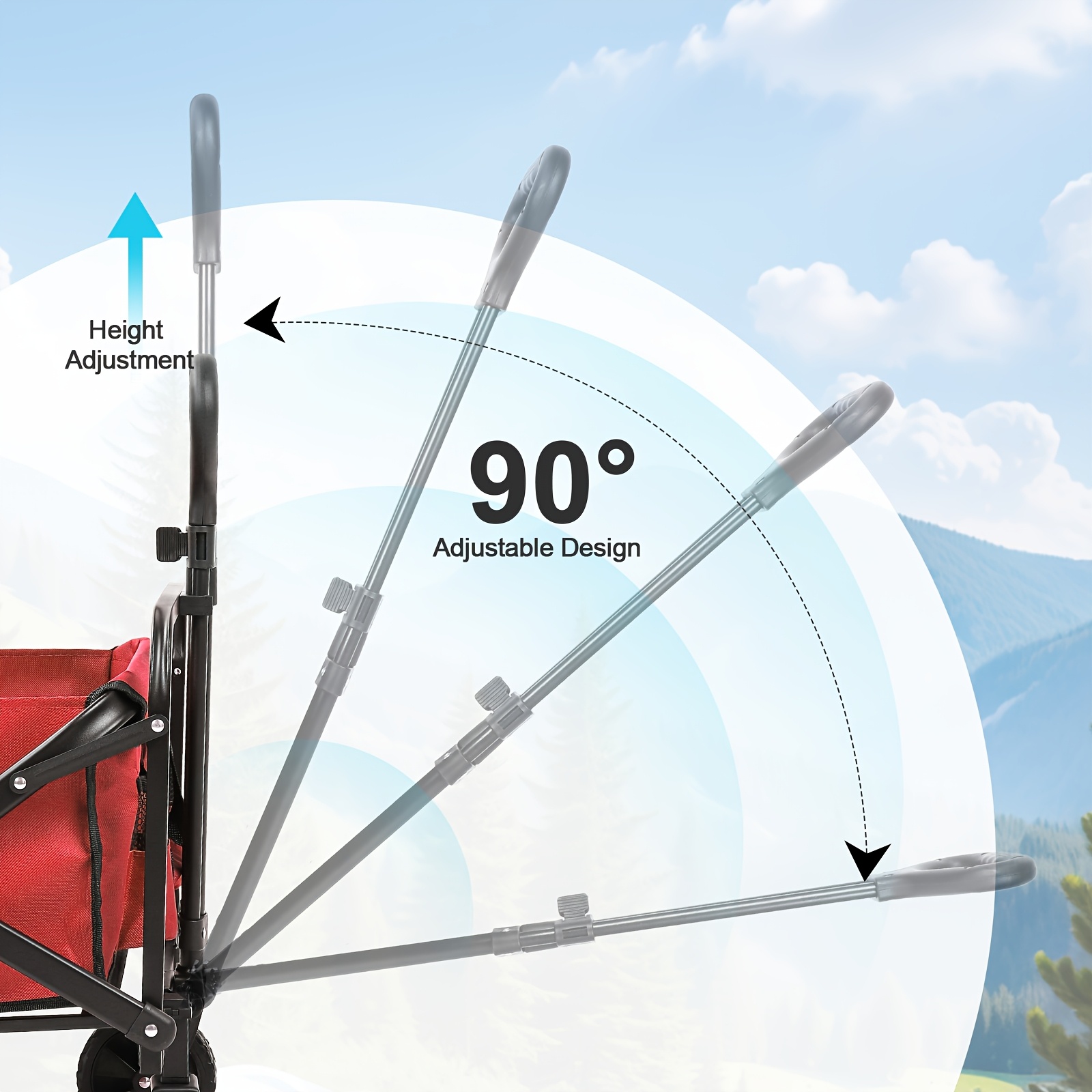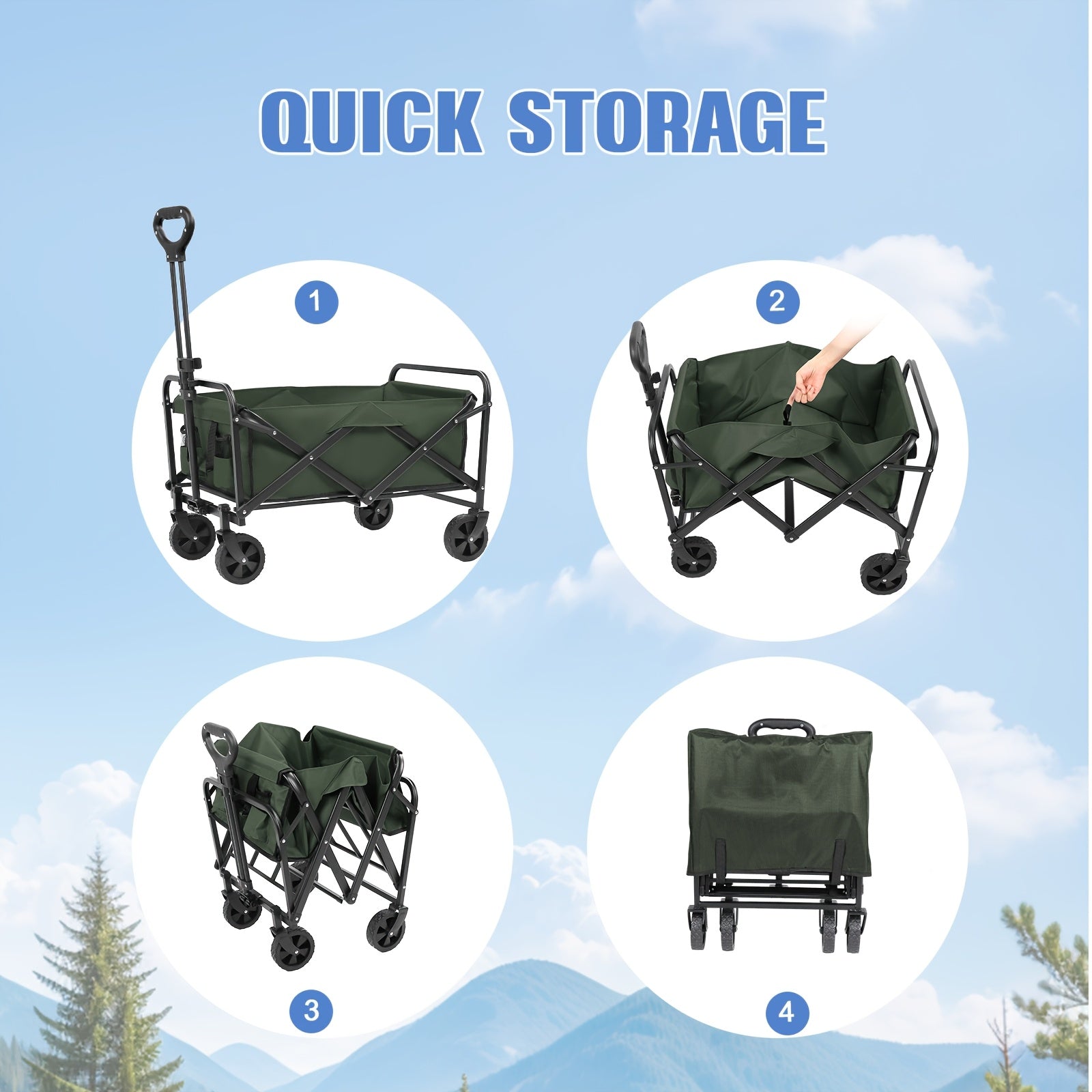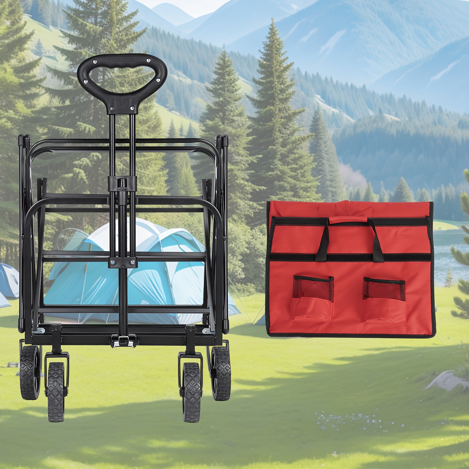 [Multifunctional Application-Utility Wagon]: This folding wagon cart is equipped with four detachable all-terrain wheels, including two front wheels that rotate 360° to easily move across different terrains. The grocery cart on wheels can not only accompany you to transport packages, but also to go shopping, camping, sports